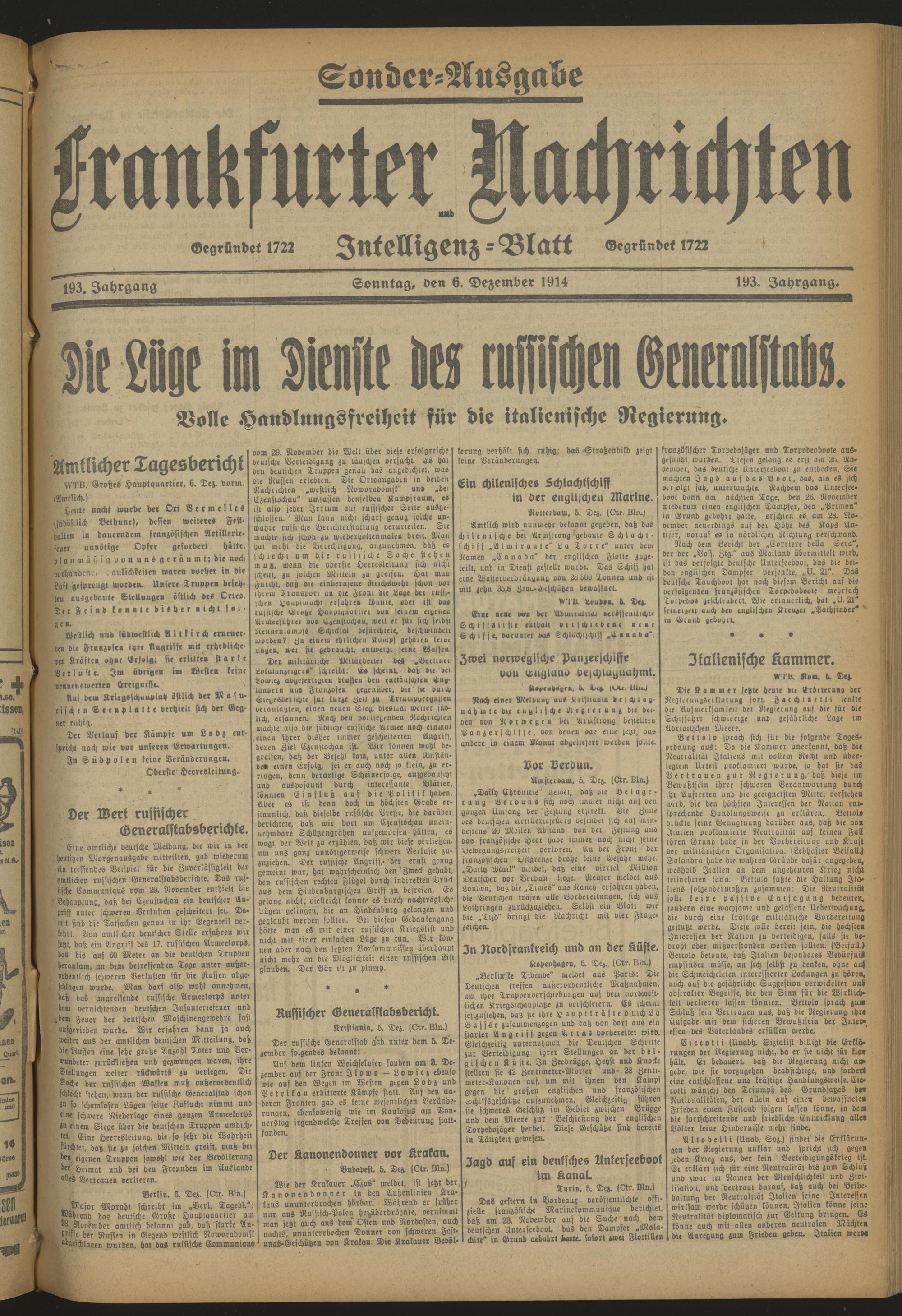 Frankfurter Nachrichten und Intelligenzblatt. 1914-1918