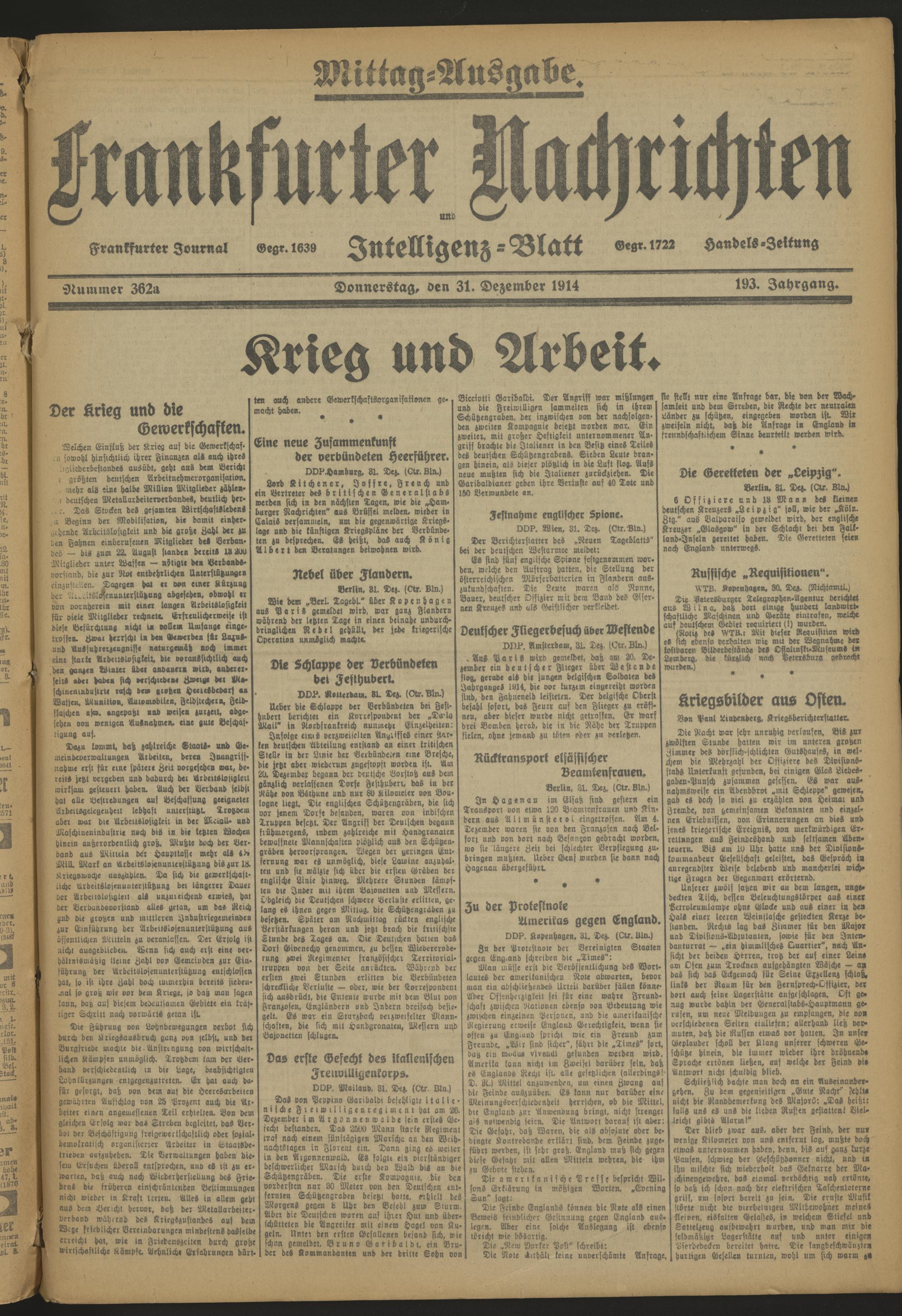 Frankfurter Nachrichten und Intelligenzblatt. 1914-1918