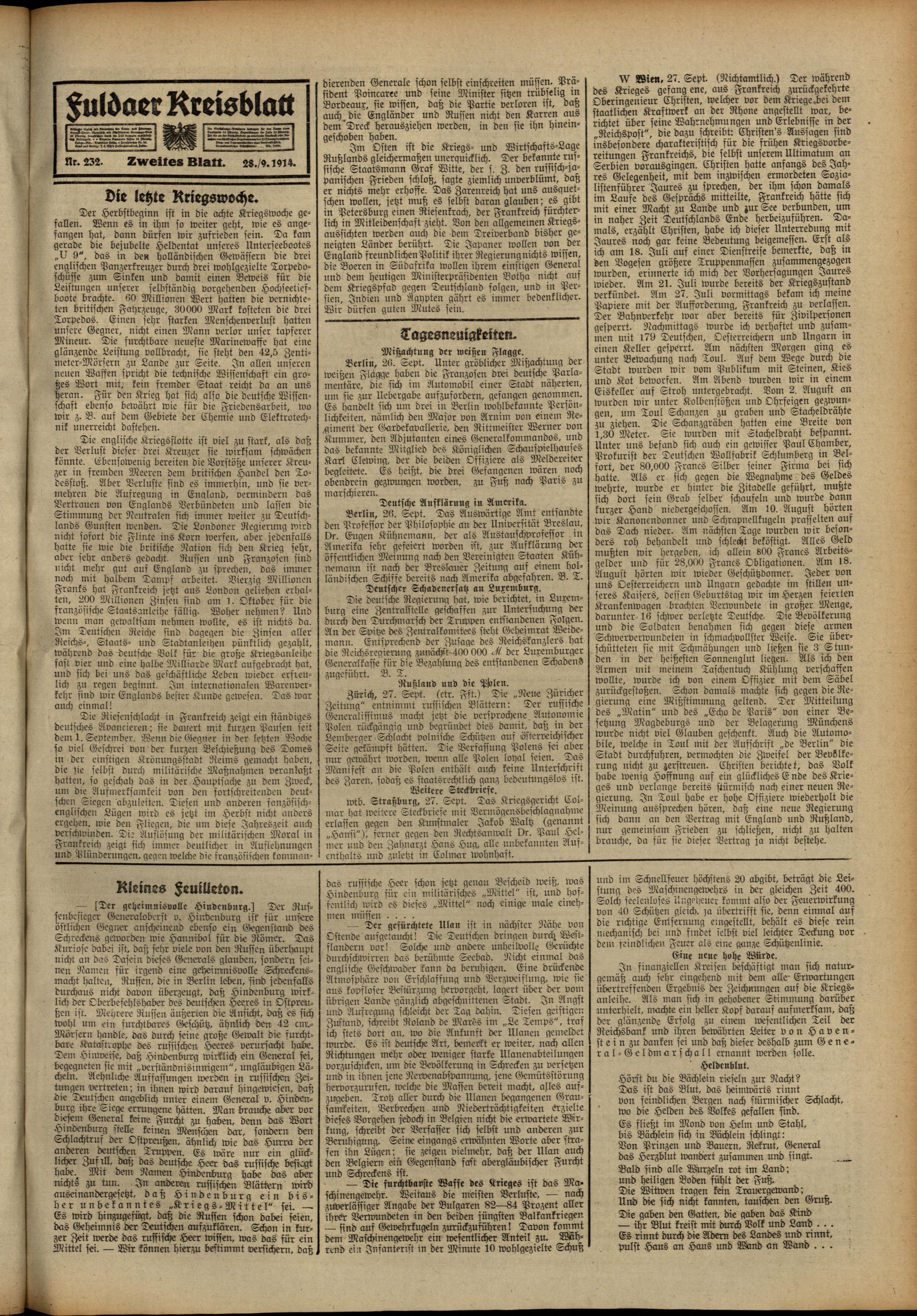 Fuldaer Kreisblatt. 1885-1920
