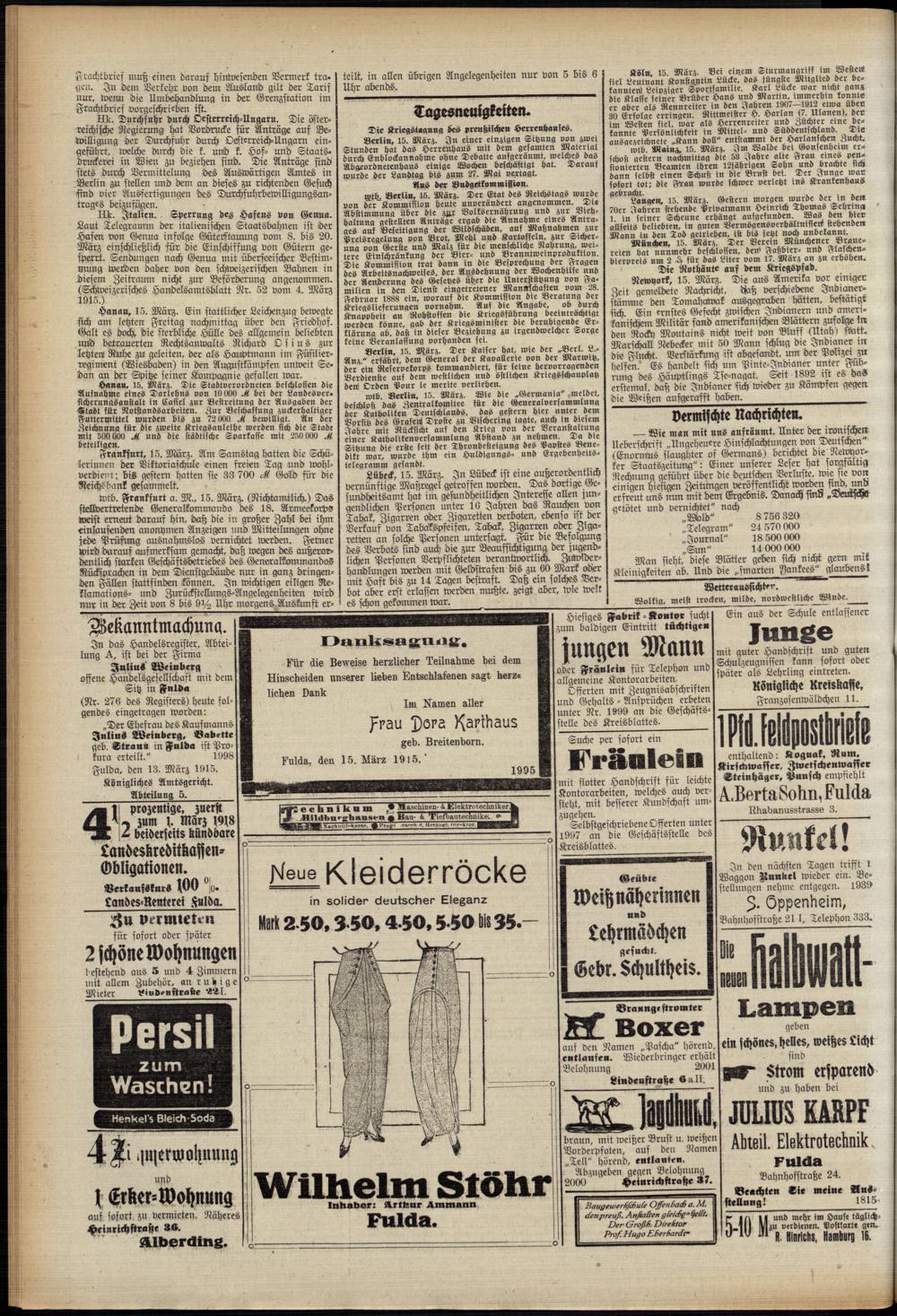 Fuldaer Kreisblatt. 1885-1920
