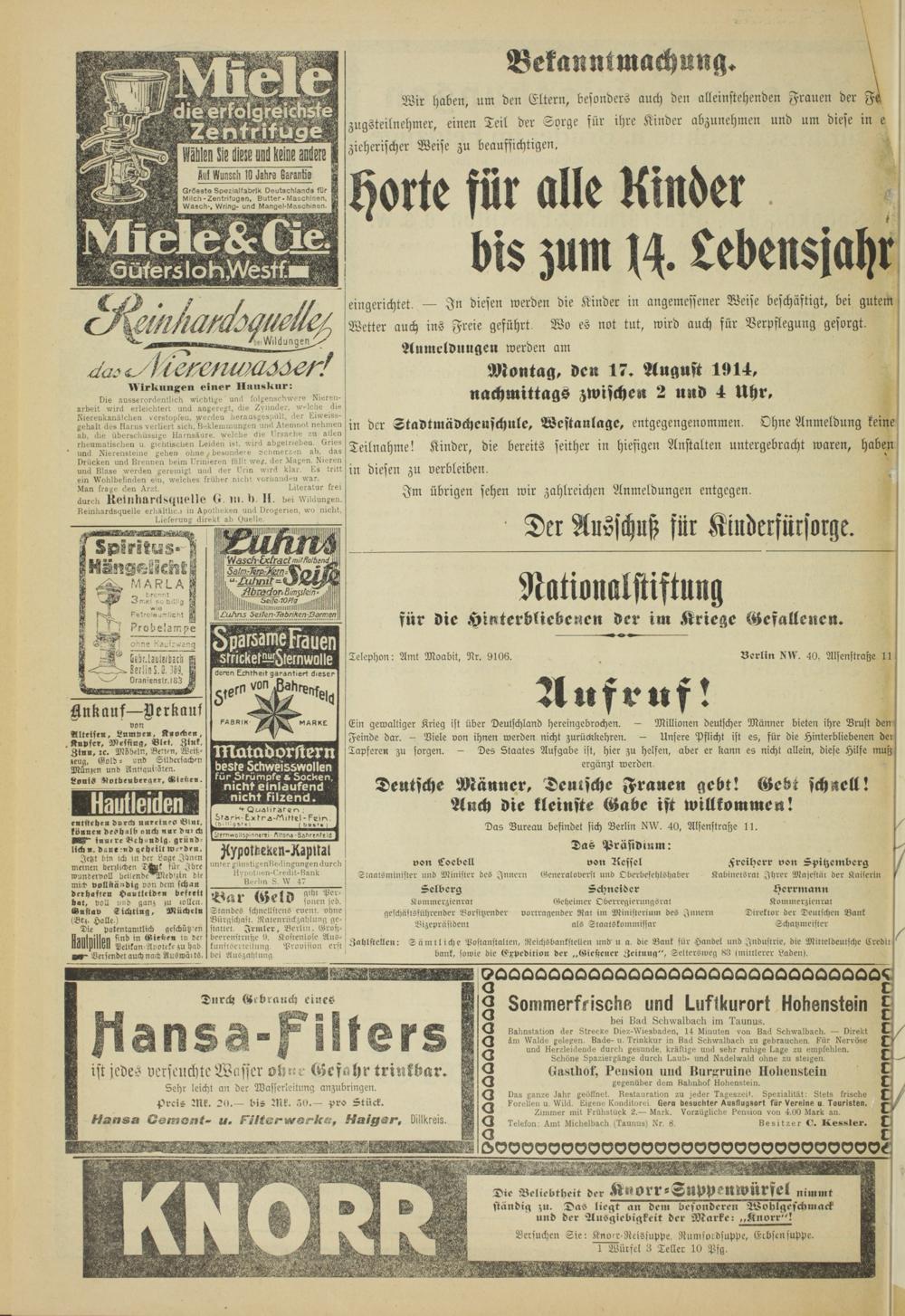 Gießener Zeitung. 1914-1918