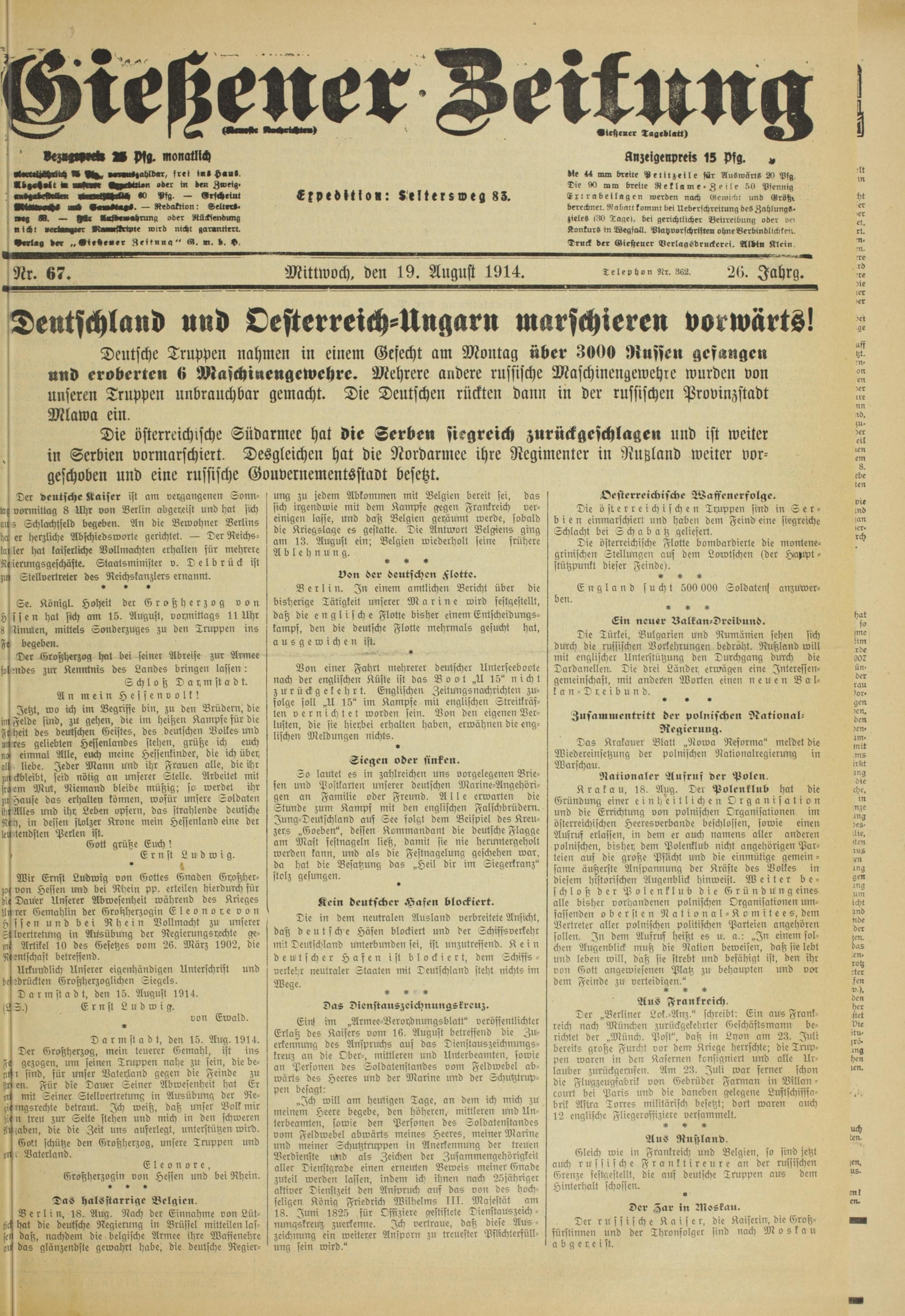 Gießener Zeitung. 1914-1918