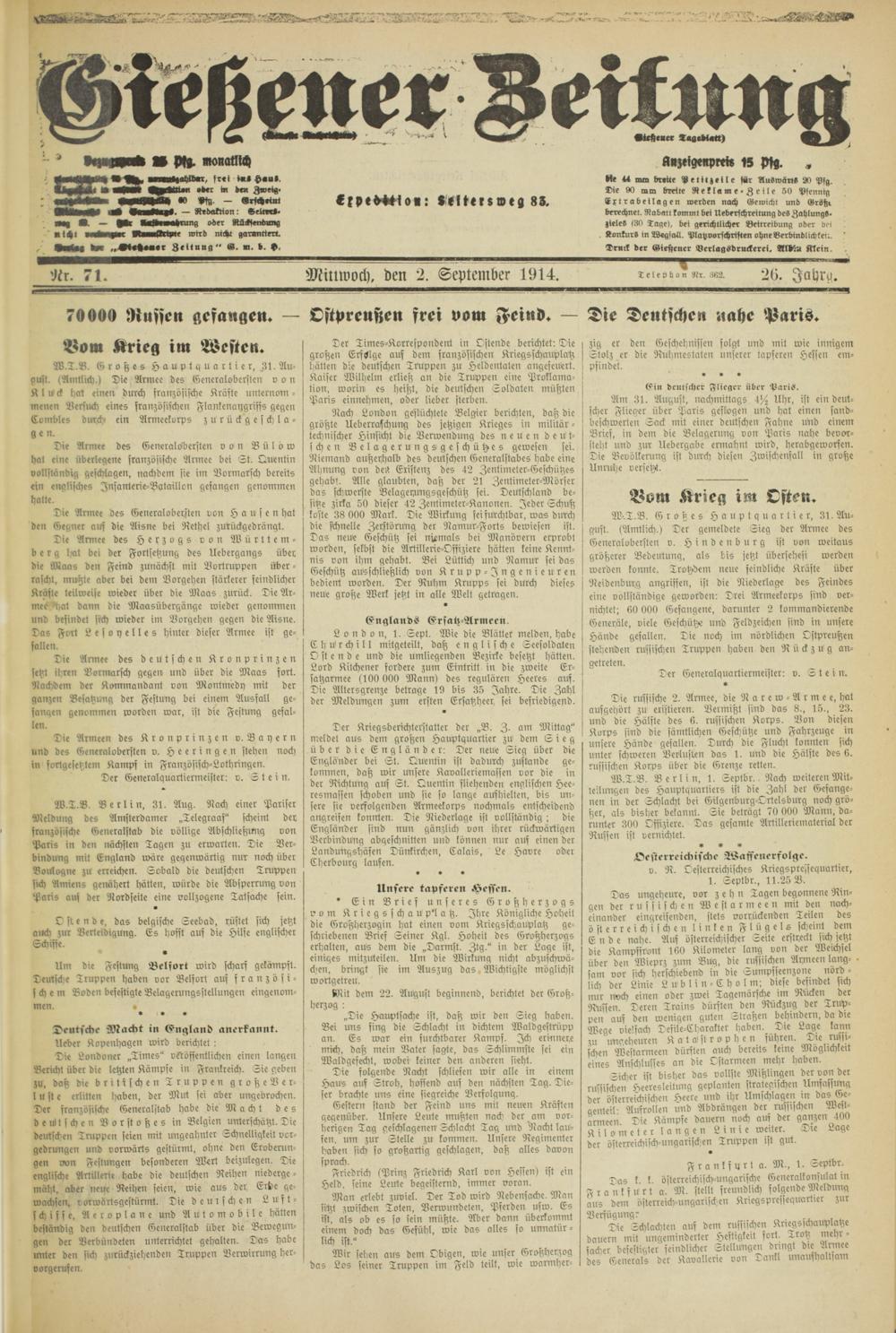 Gießener Zeitung. 1914-1918