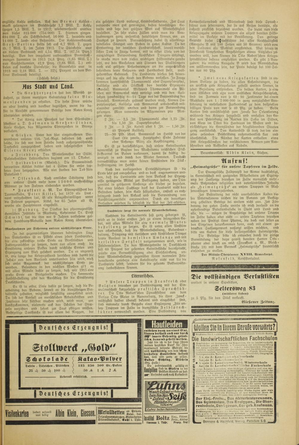 Gießener Zeitung. 1914-1918