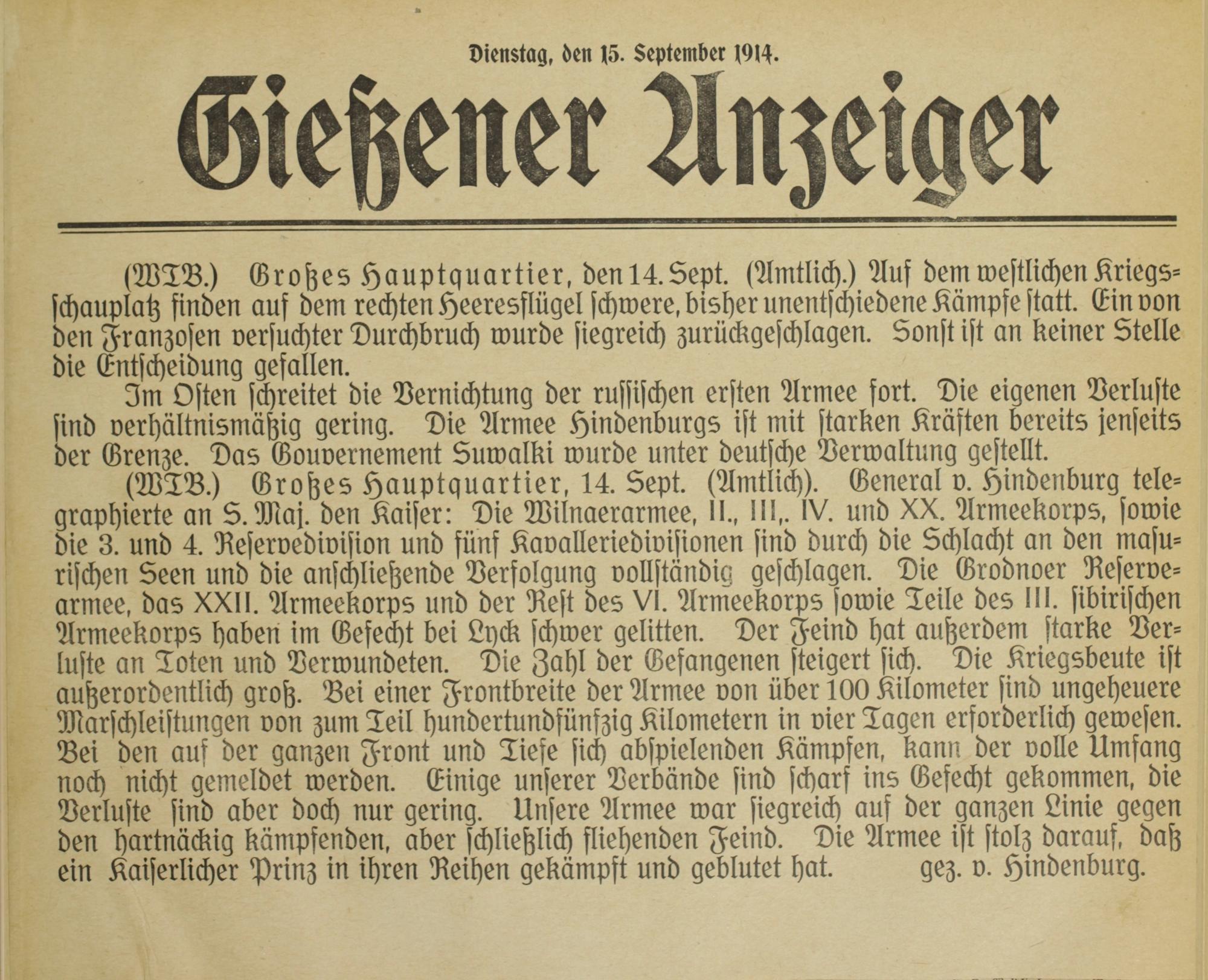 Gießener Zeitung. 1914-1918