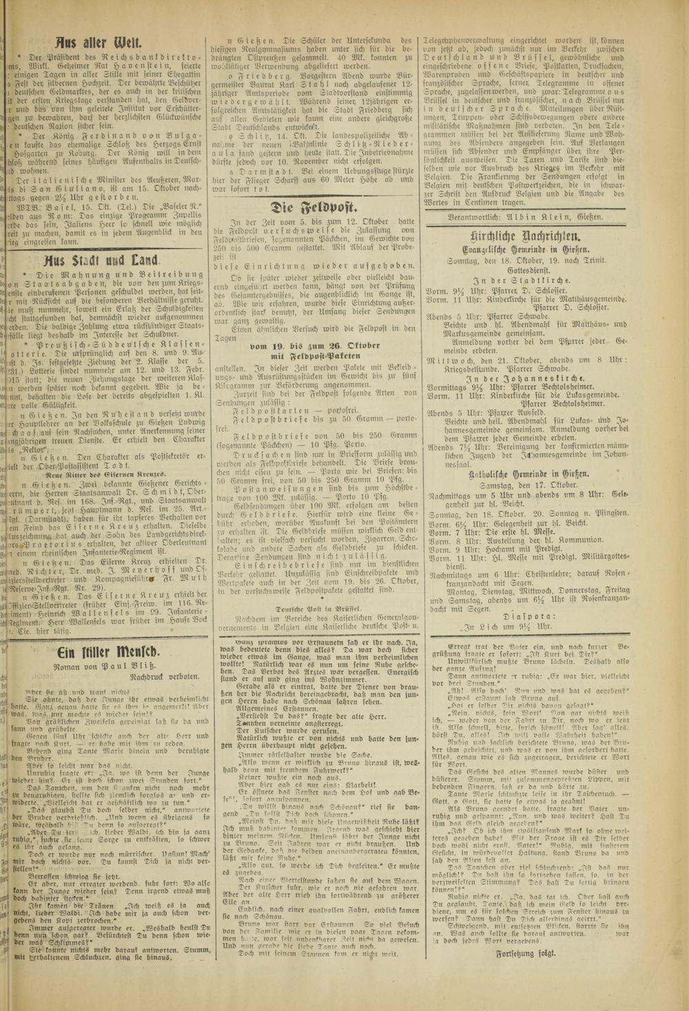 Gießener Zeitung. 1914-1918