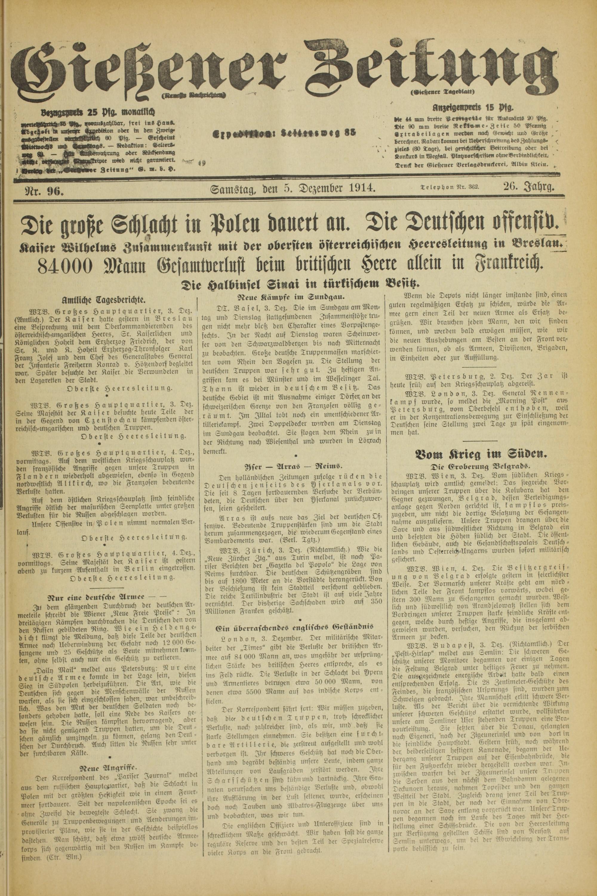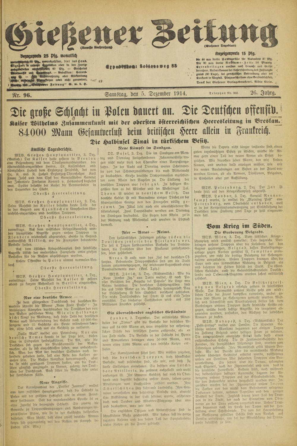Gießener Zeitung. 1914-1918