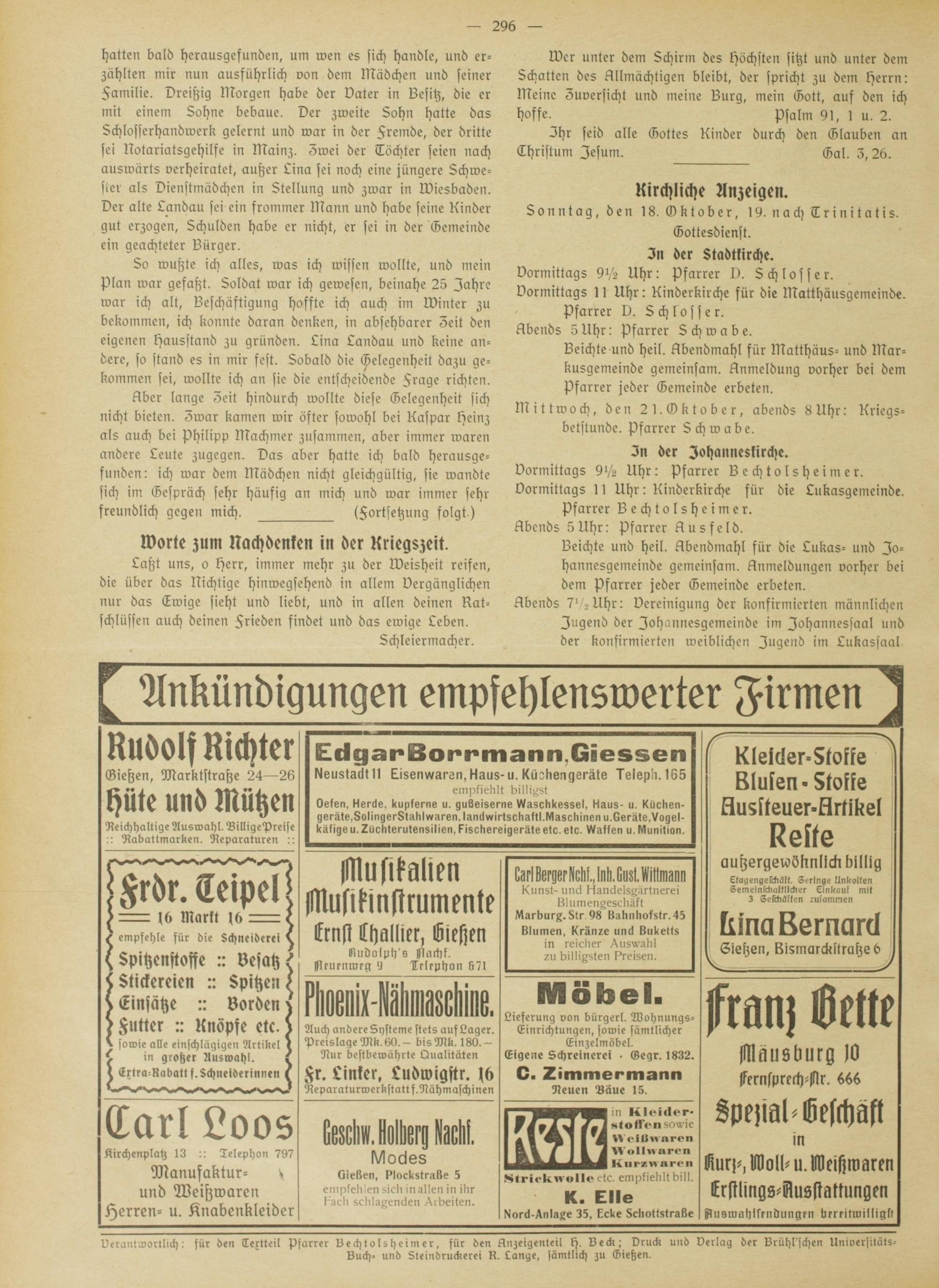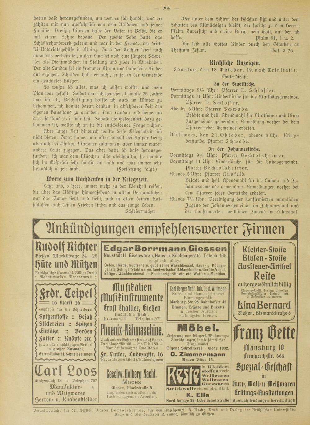 Sonntagsgruß. 1914-1918