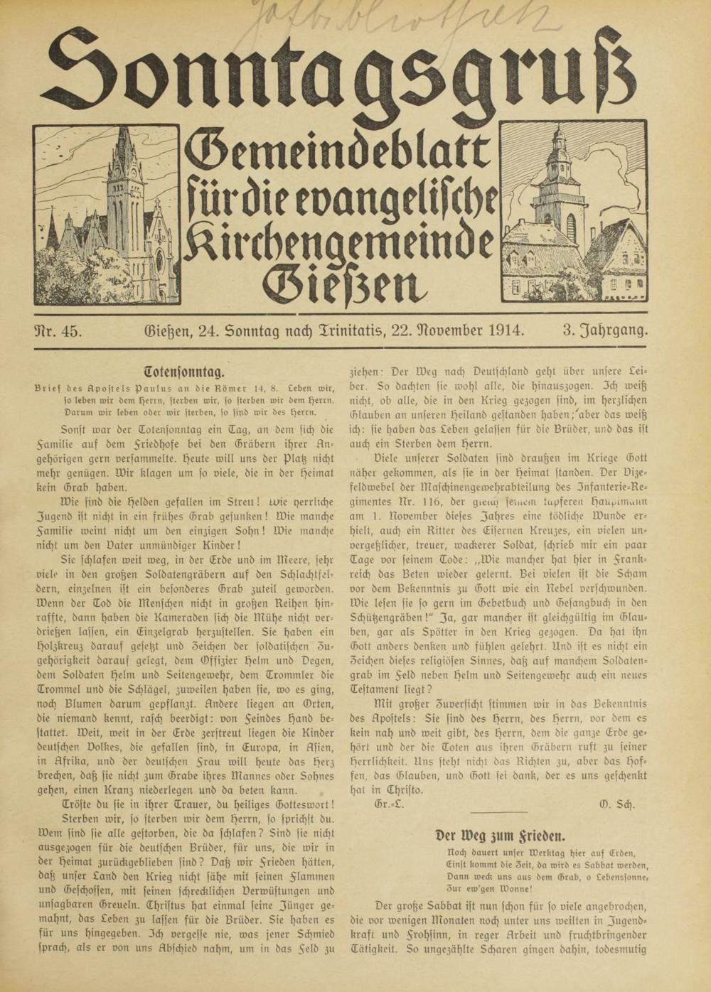 Sonntagsgruß. 1914-1918