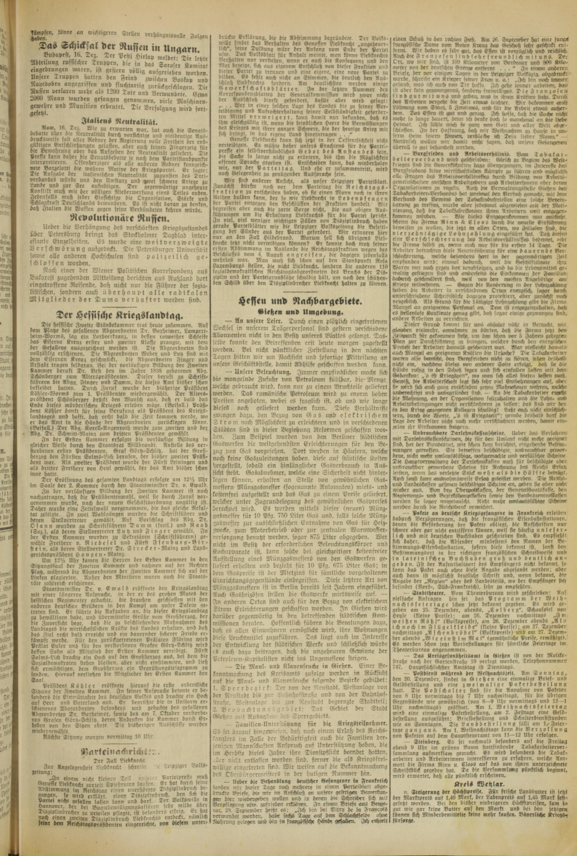 Oberhessische Volkszeitung. 1914-1923