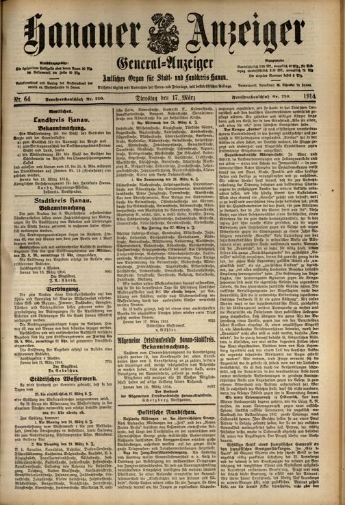 Hanauer Anzeiger. 1872-1941