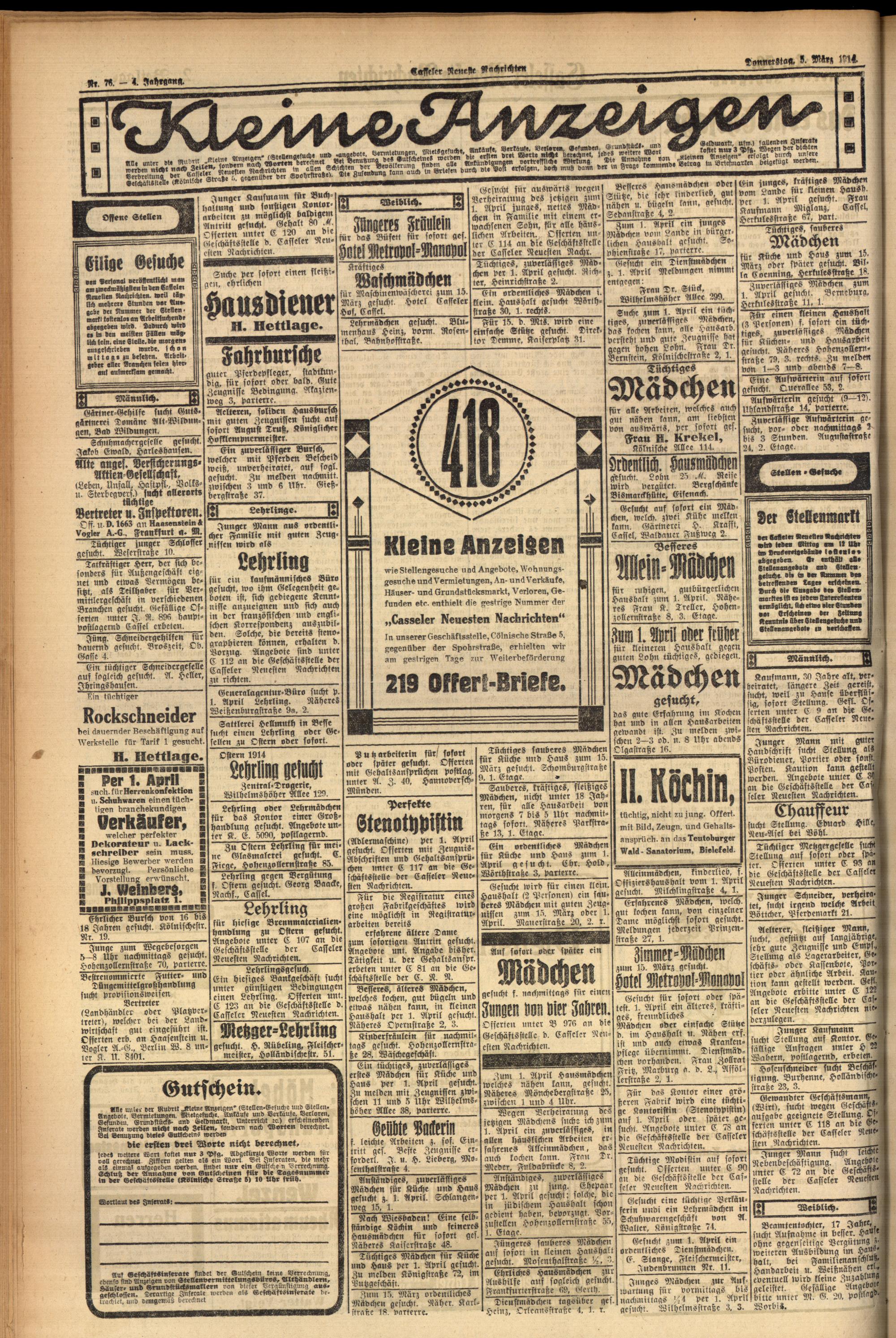 Casseler neueste Nachrichten. 1914-1918
