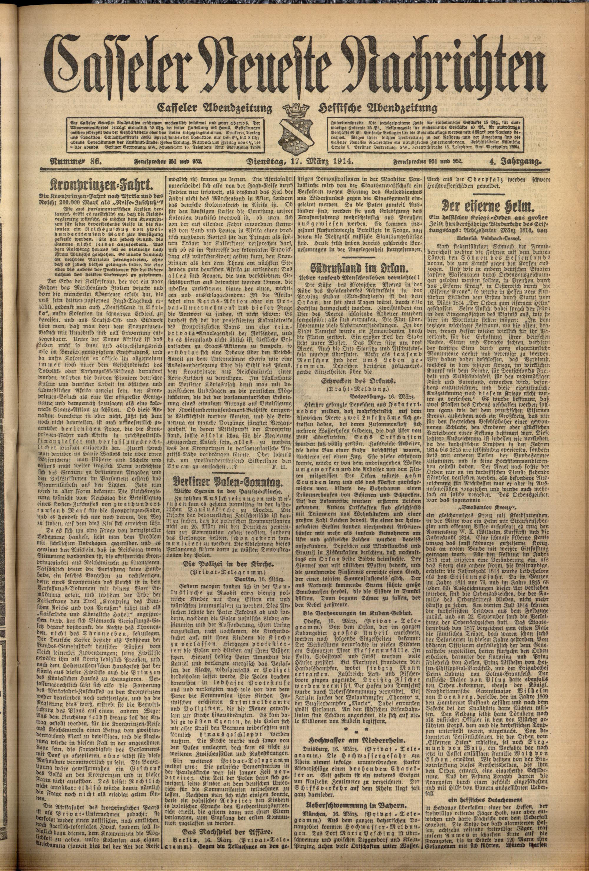 Casseler neueste Nachrichten. 1914-1918