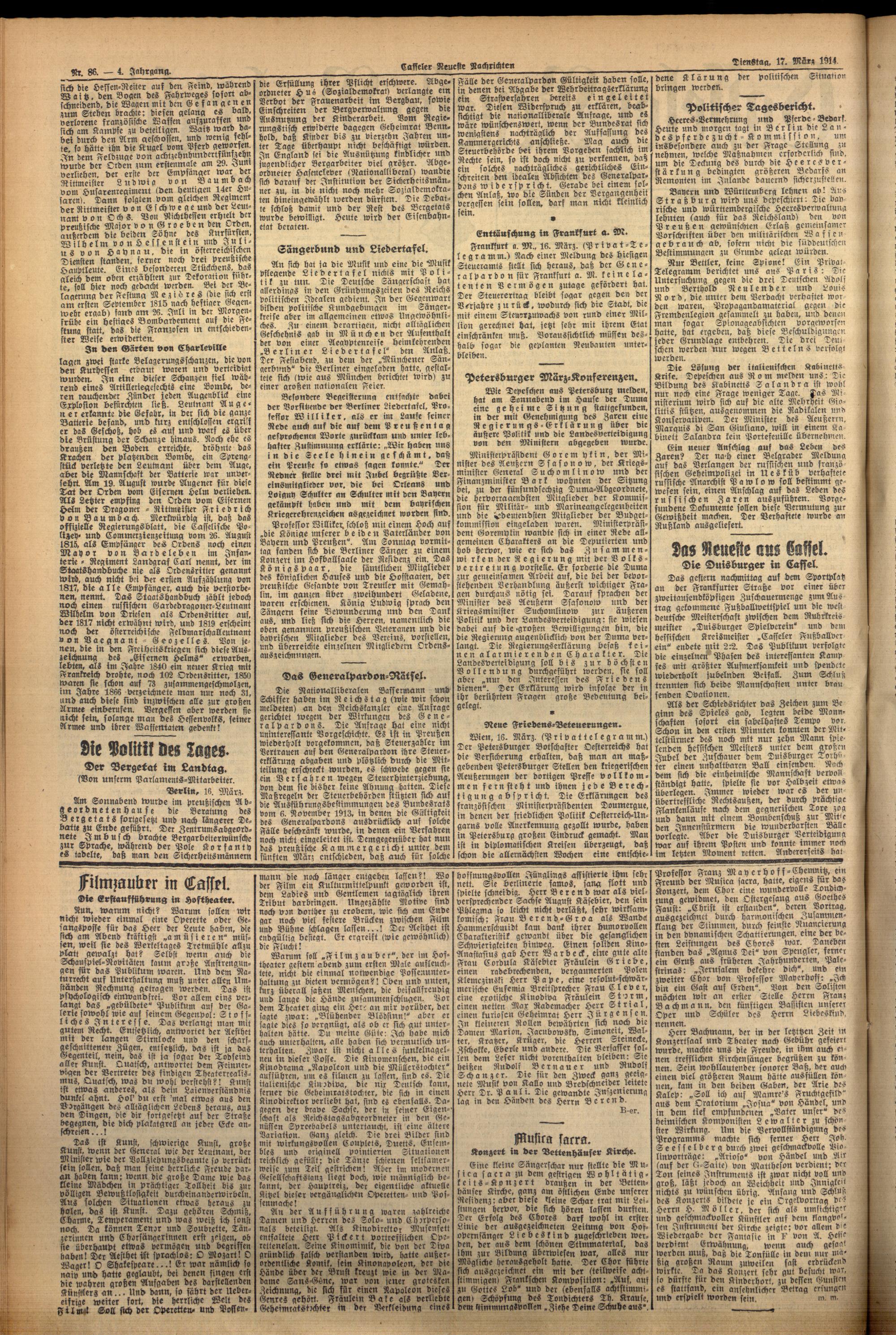 Casseler neueste Nachrichten. 1914-1918