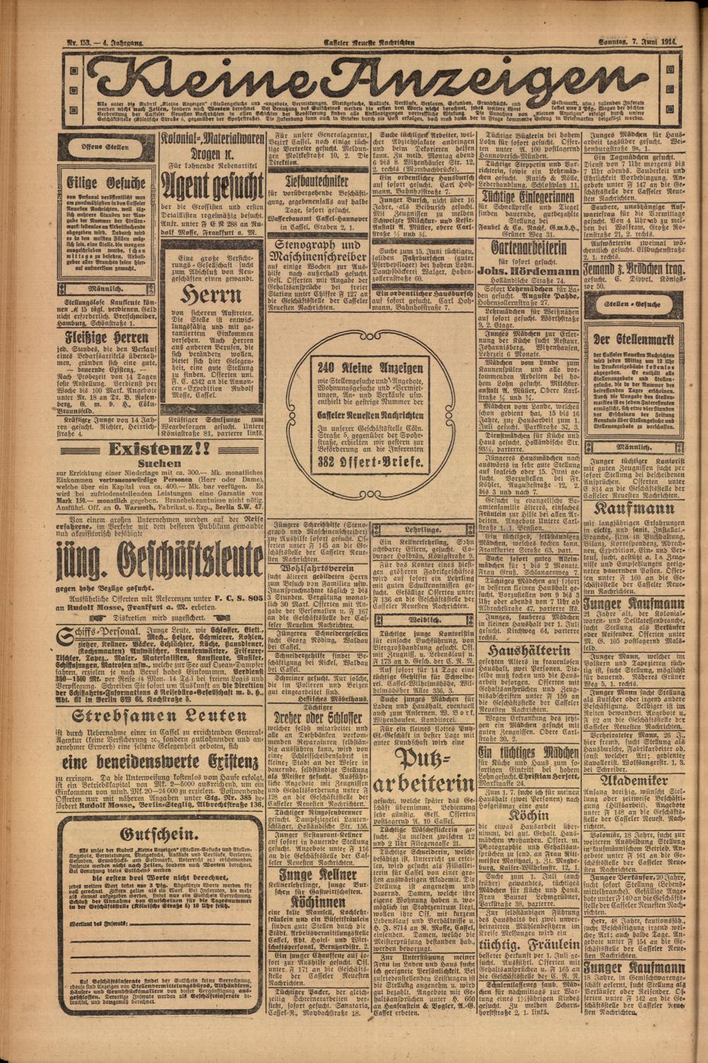 Casseler neueste Nachrichten. 1914-1918