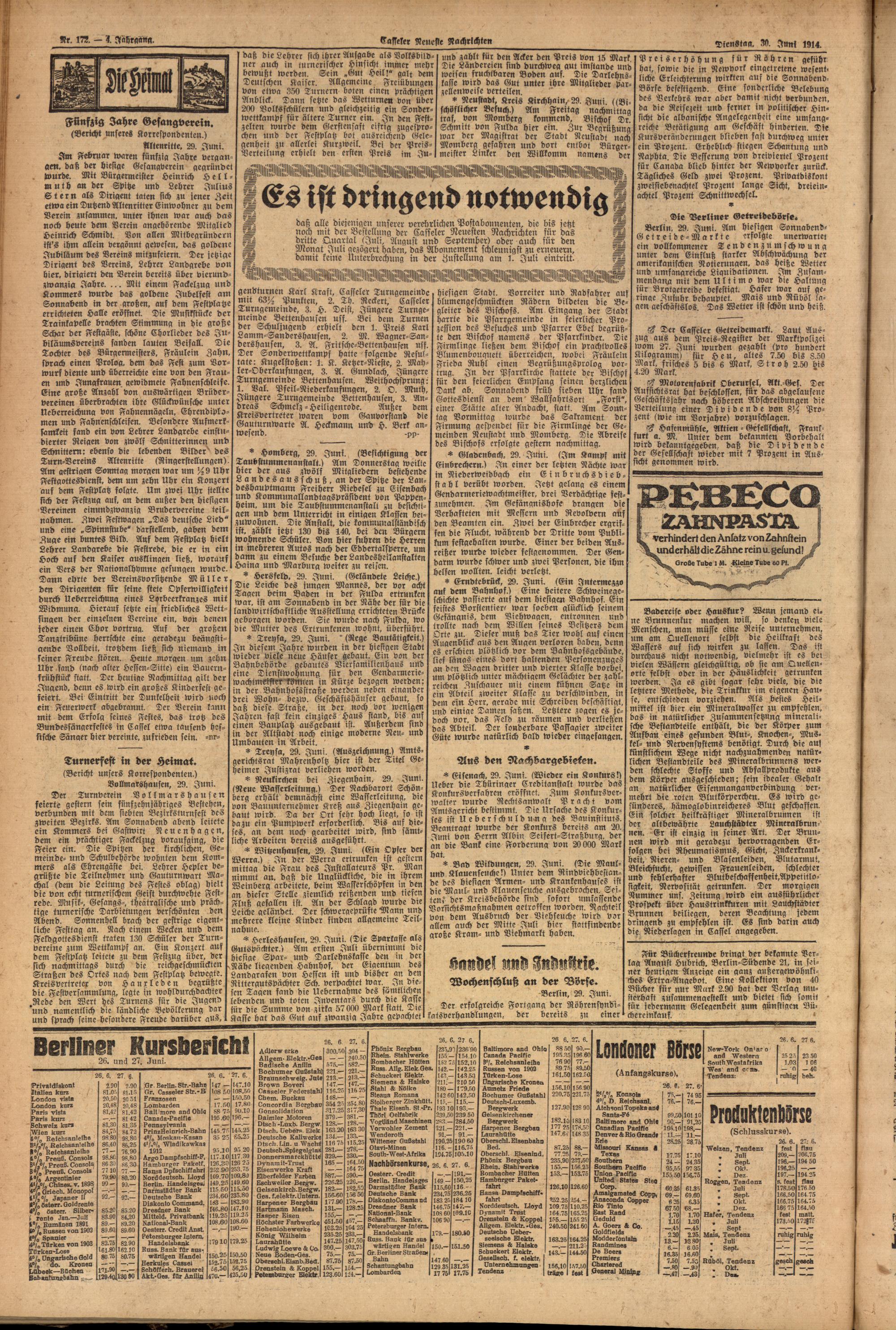 Casseler neueste Nachrichten. 1914-1918