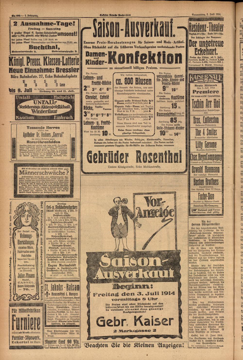Casseler neueste Nachrichten. 1914-1918