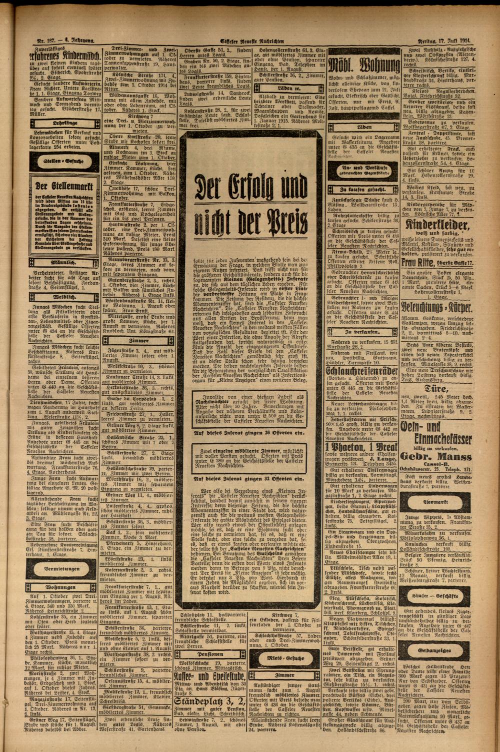 Casseler neueste Nachrichten. 1914-1918