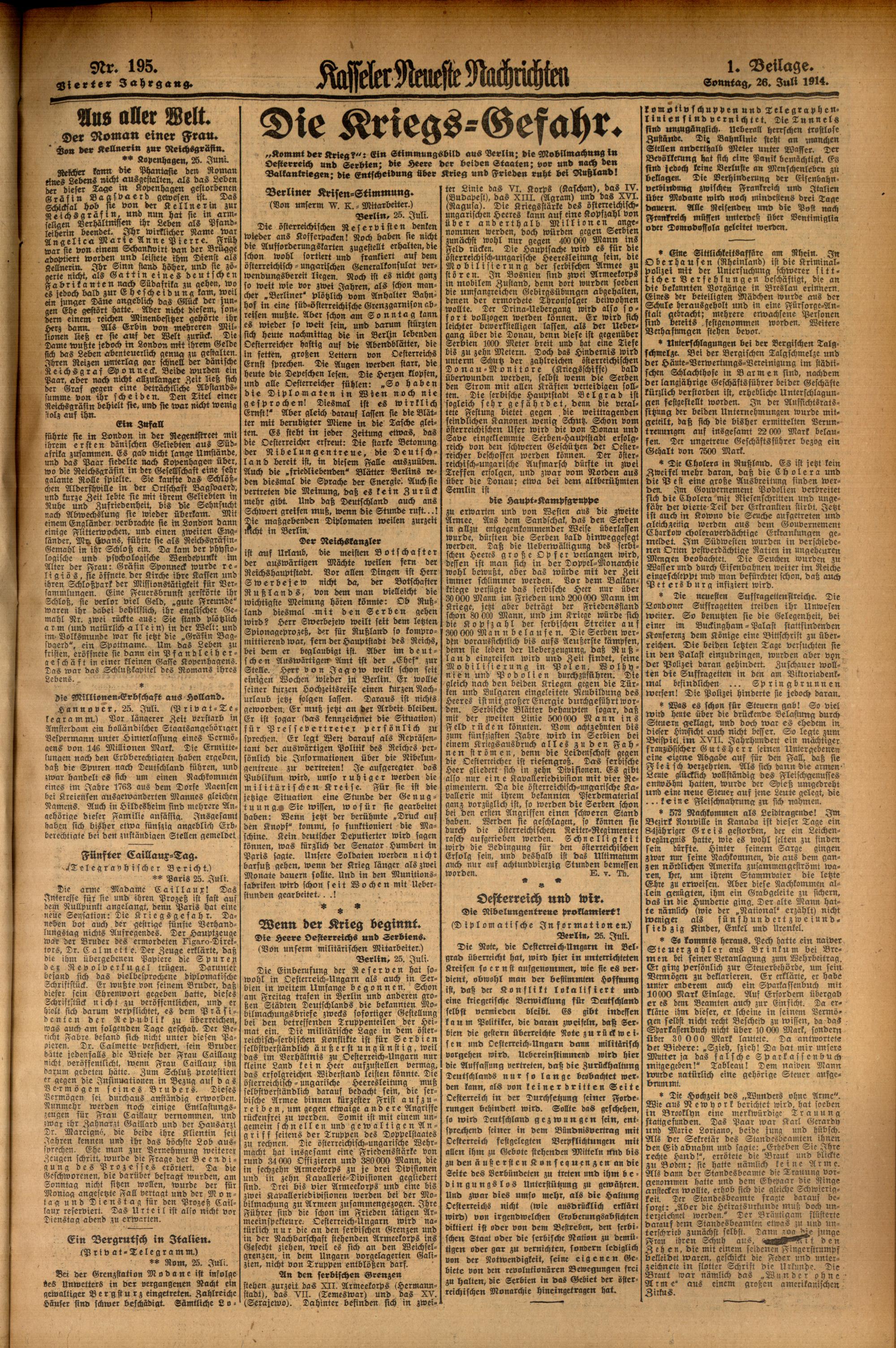 Casseler neueste Nachrichten. 1914-1918
