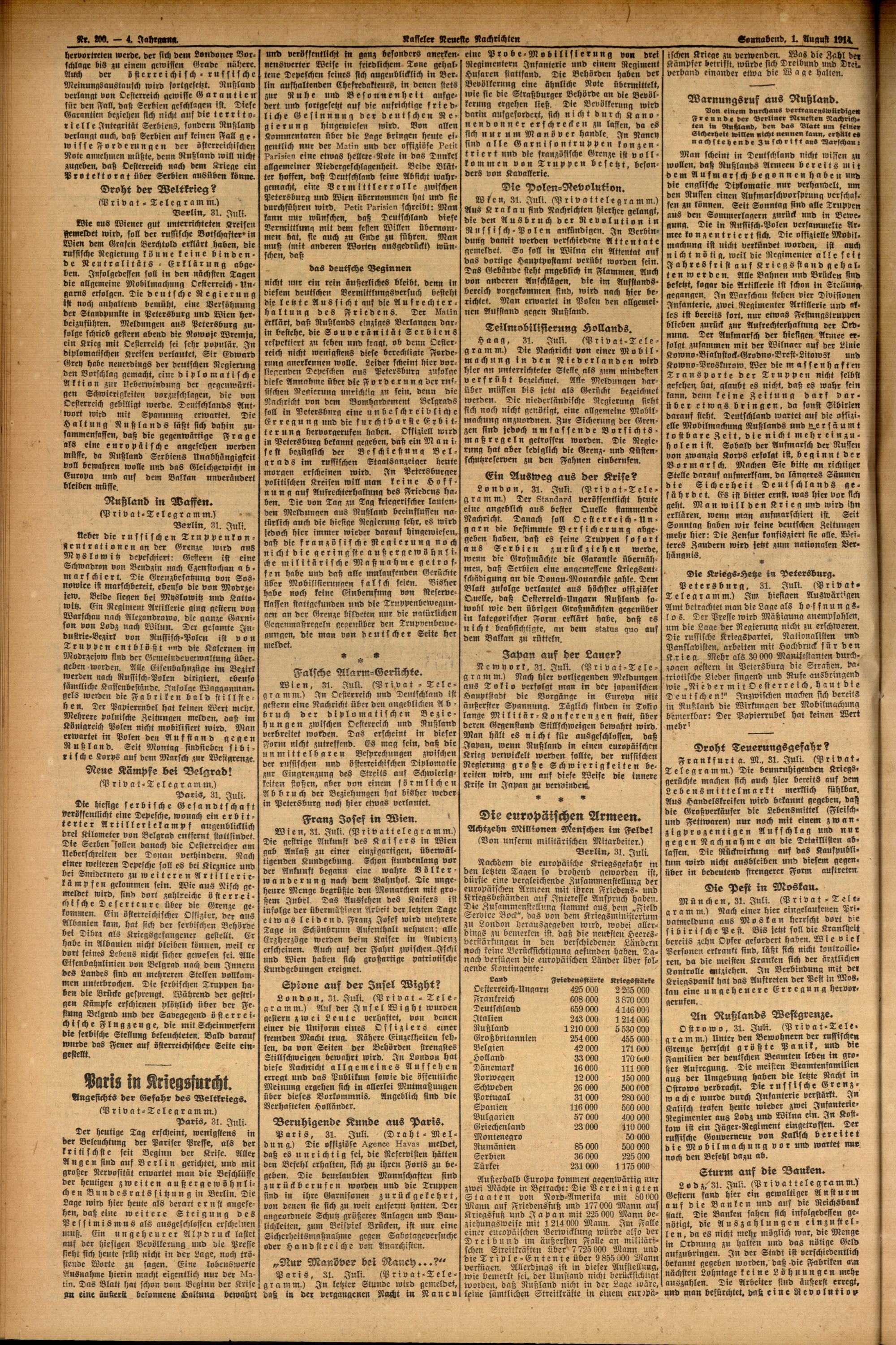 Casseler neueste Nachrichten. 1914-1918