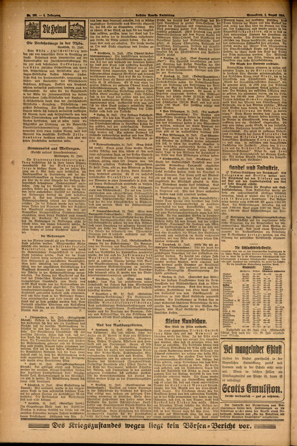 Casseler neueste Nachrichten. 1914-1918
