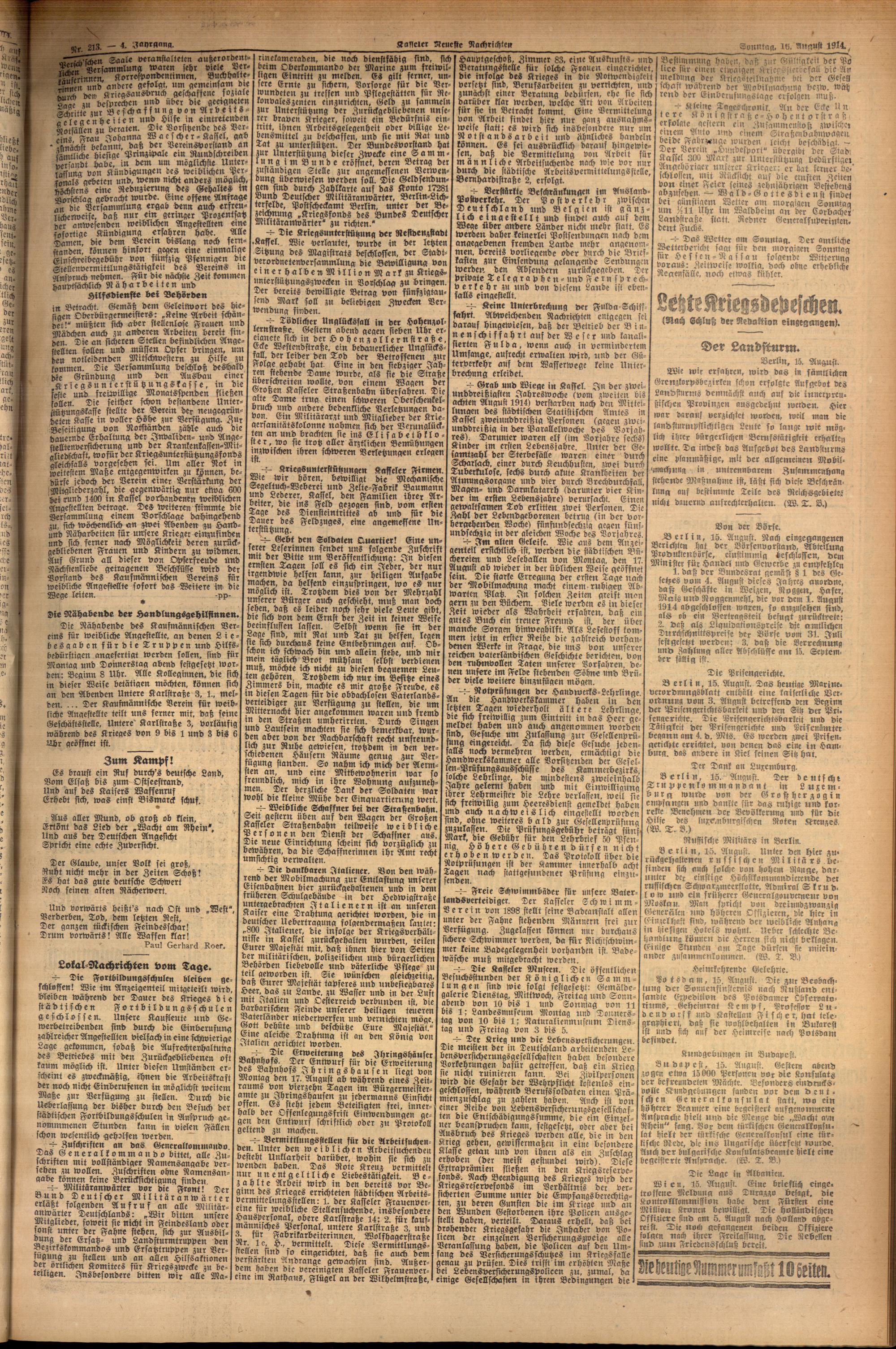 Casseler neueste Nachrichten. 1914-1918