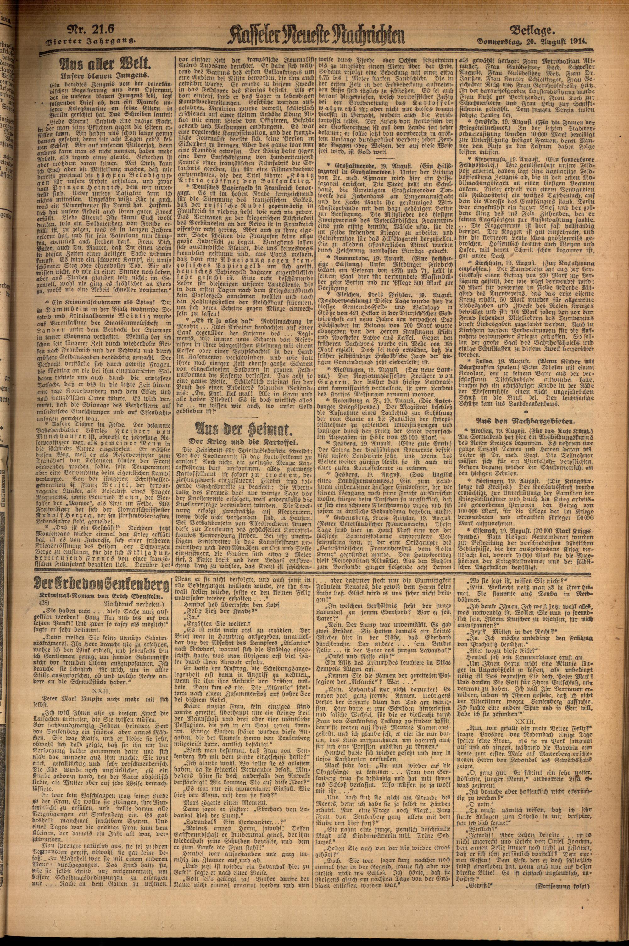 Casseler neueste Nachrichten. 1914-1918