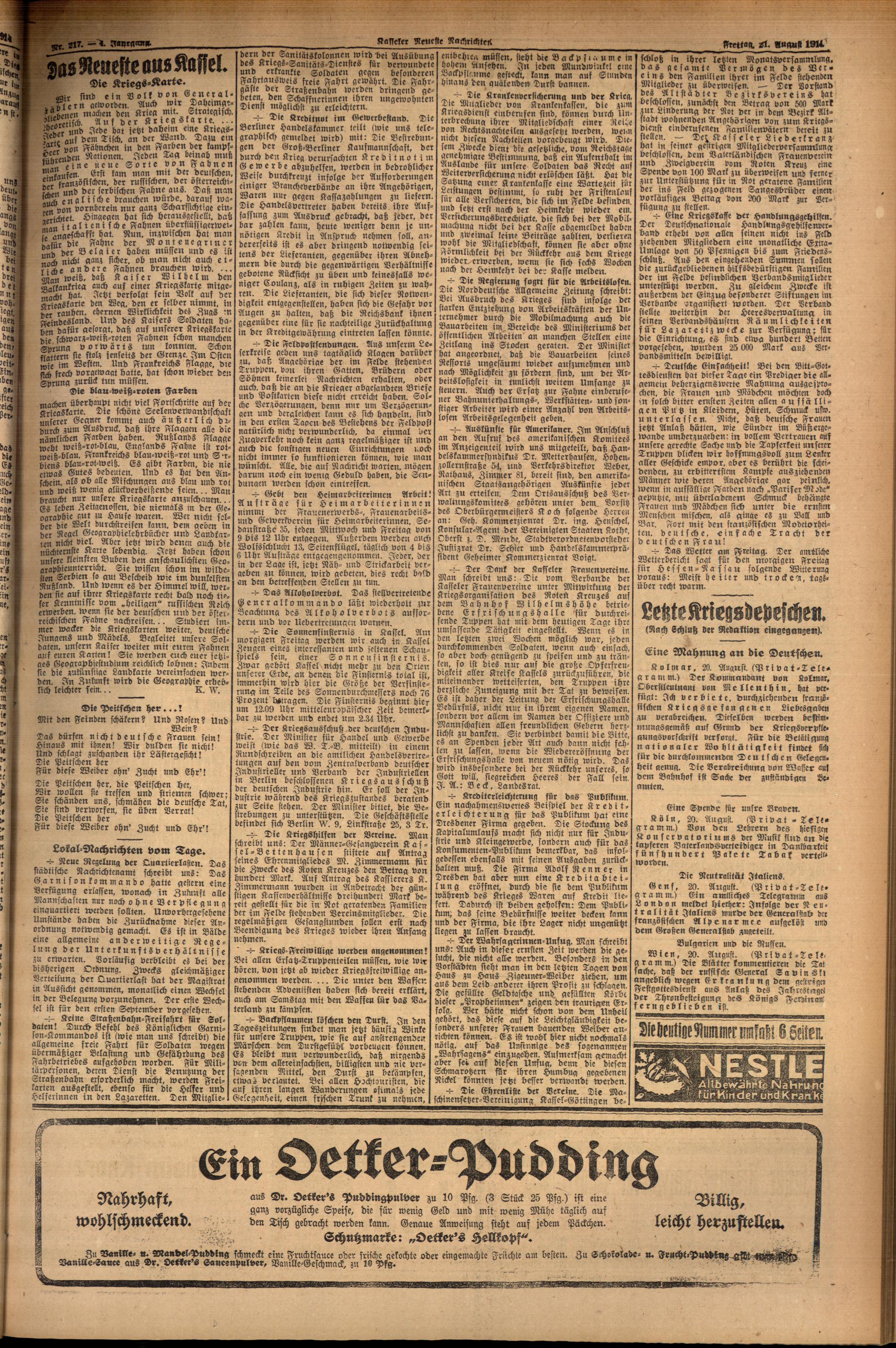 Casseler neueste Nachrichten. 1914-1918