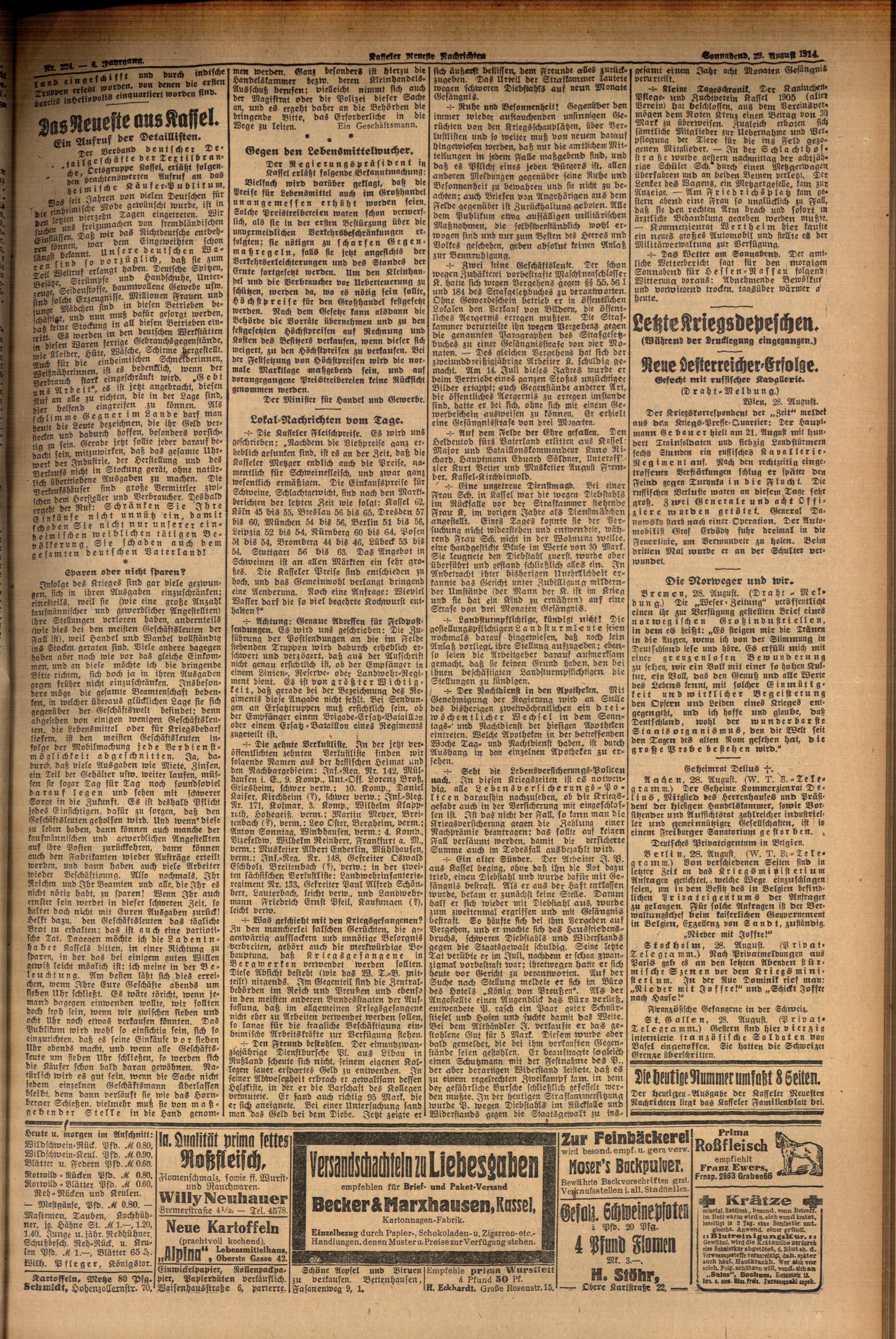 Casseler neueste Nachrichten. 1914-1918