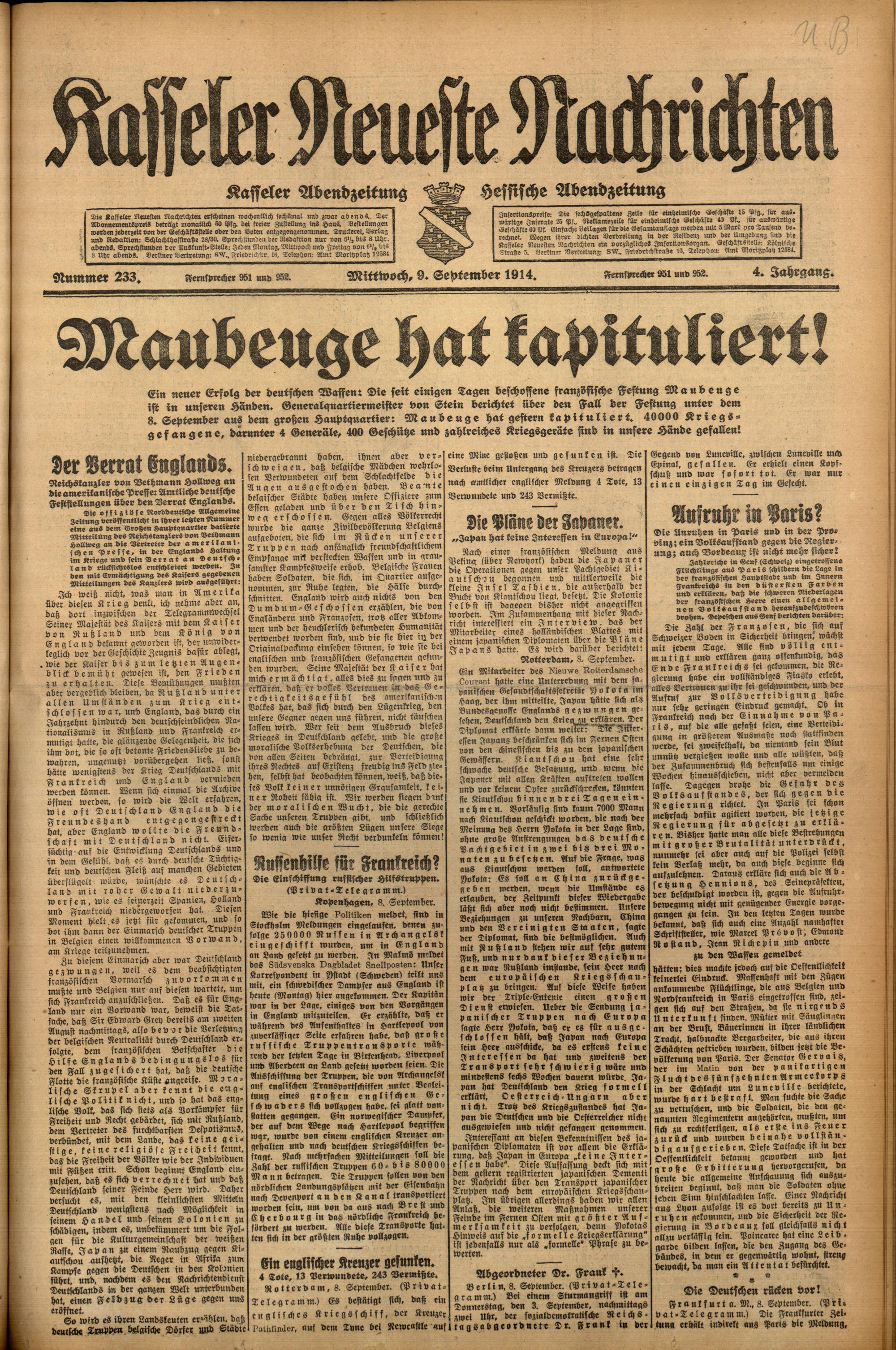 Casseler neueste Nachrichten. 1914-1918
