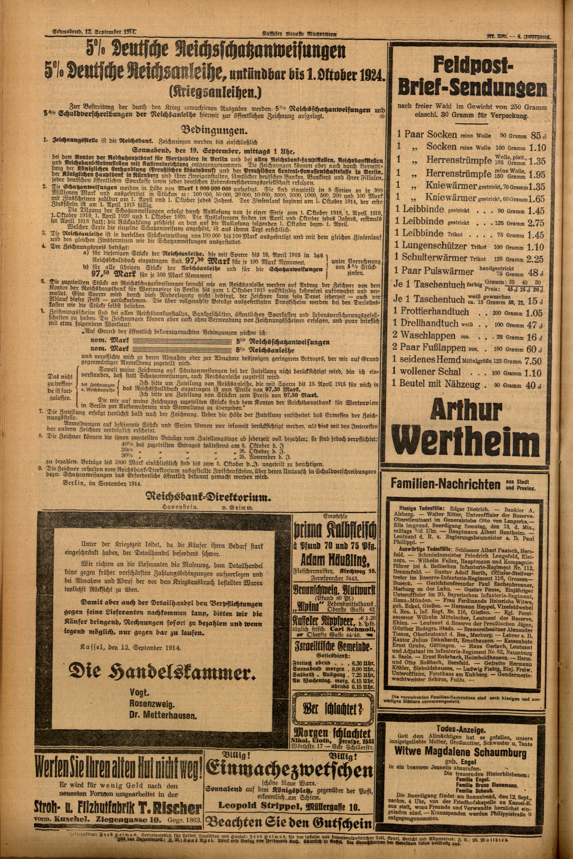 Casseler neueste Nachrichten. 1914-1918