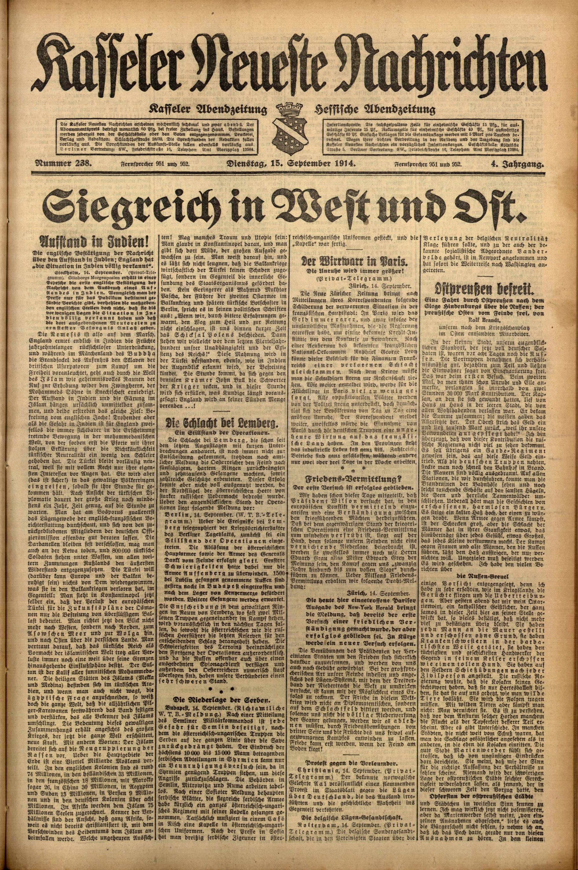 Casseler neueste Nachrichten. 1914-1918