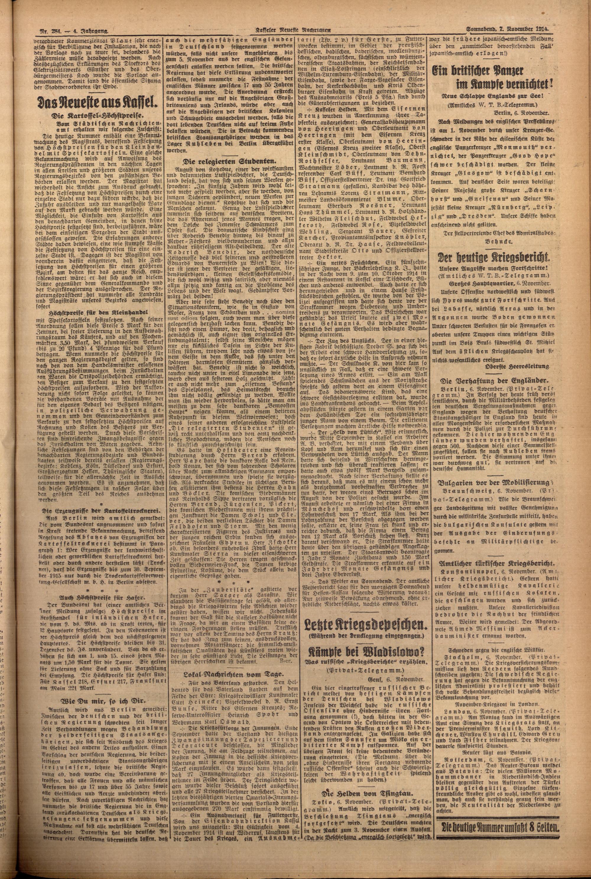 Casseler neueste Nachrichten. 1914-1918