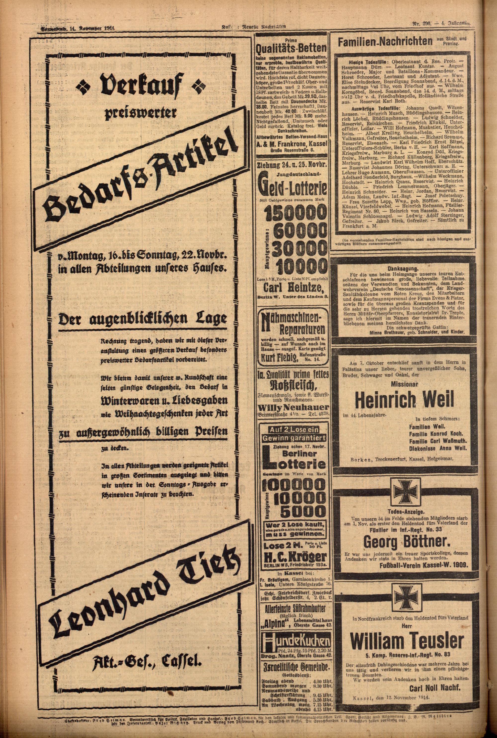 Casseler neueste Nachrichten. 1914-1918