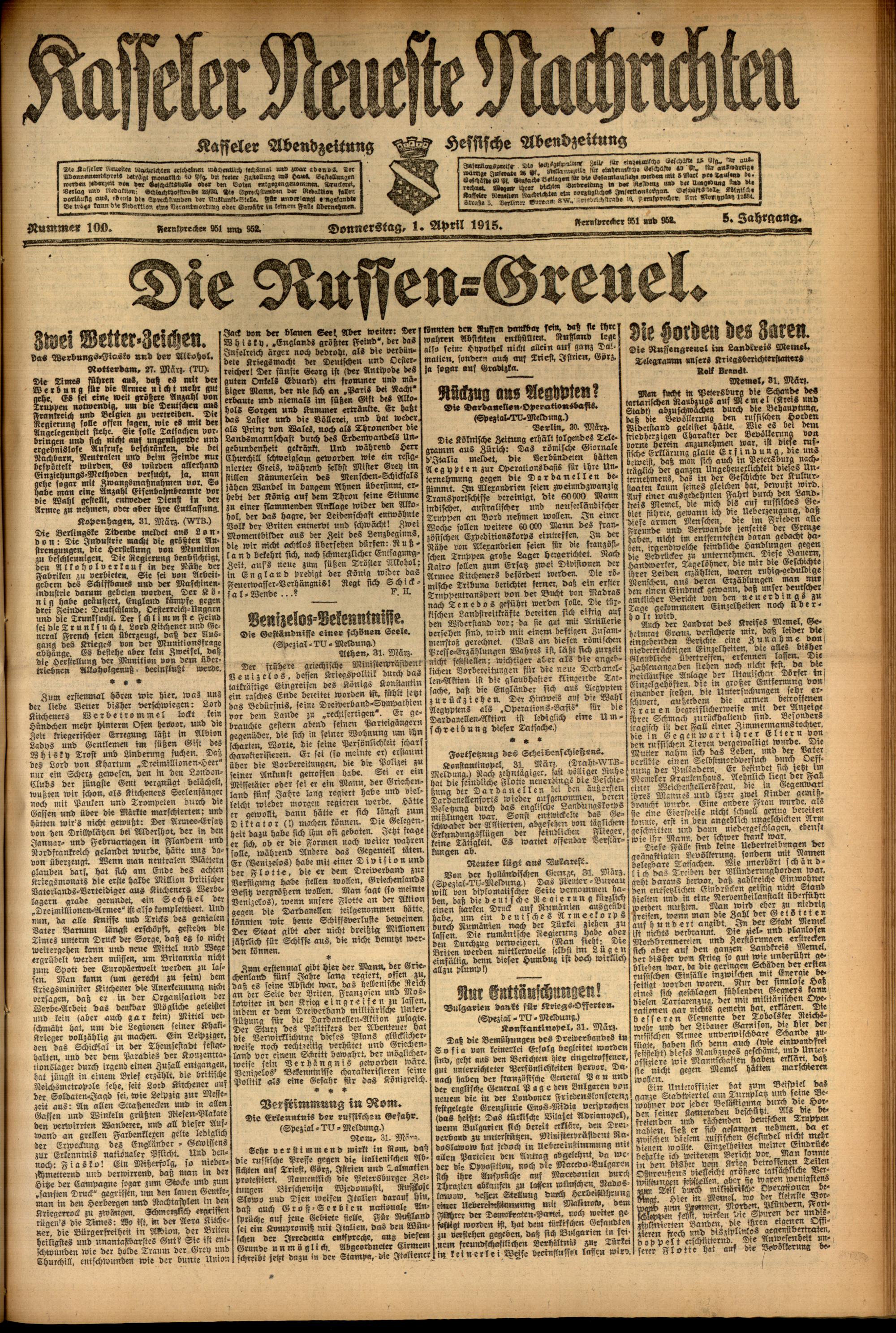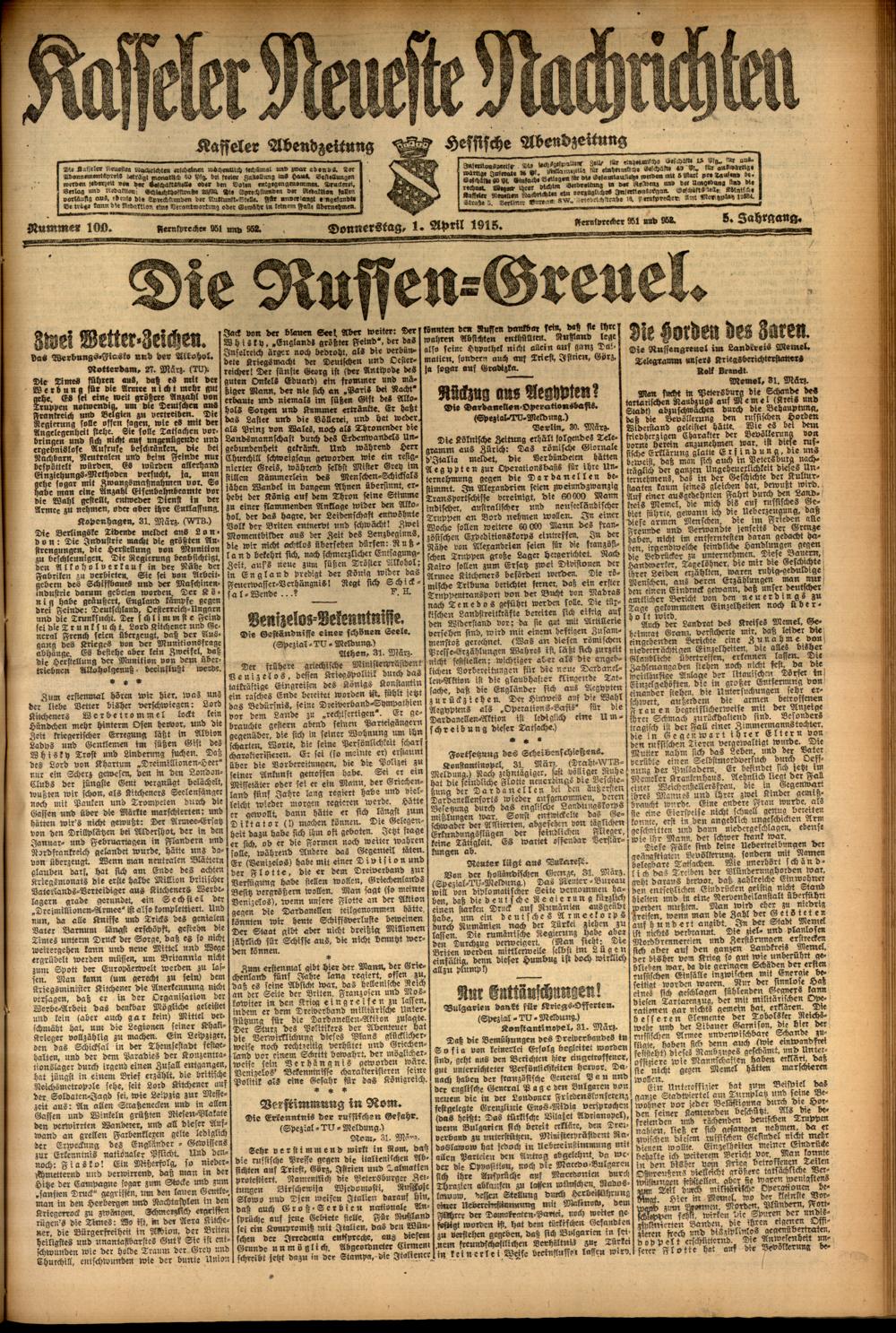 Casseler neueste Nachrichten. 1914-1918
