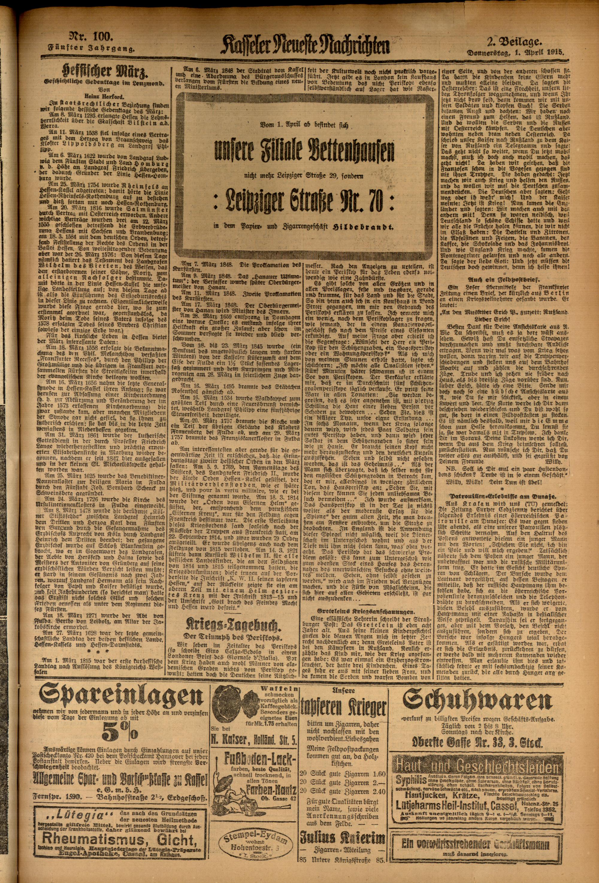 Casseler neueste Nachrichten. 1914-1918