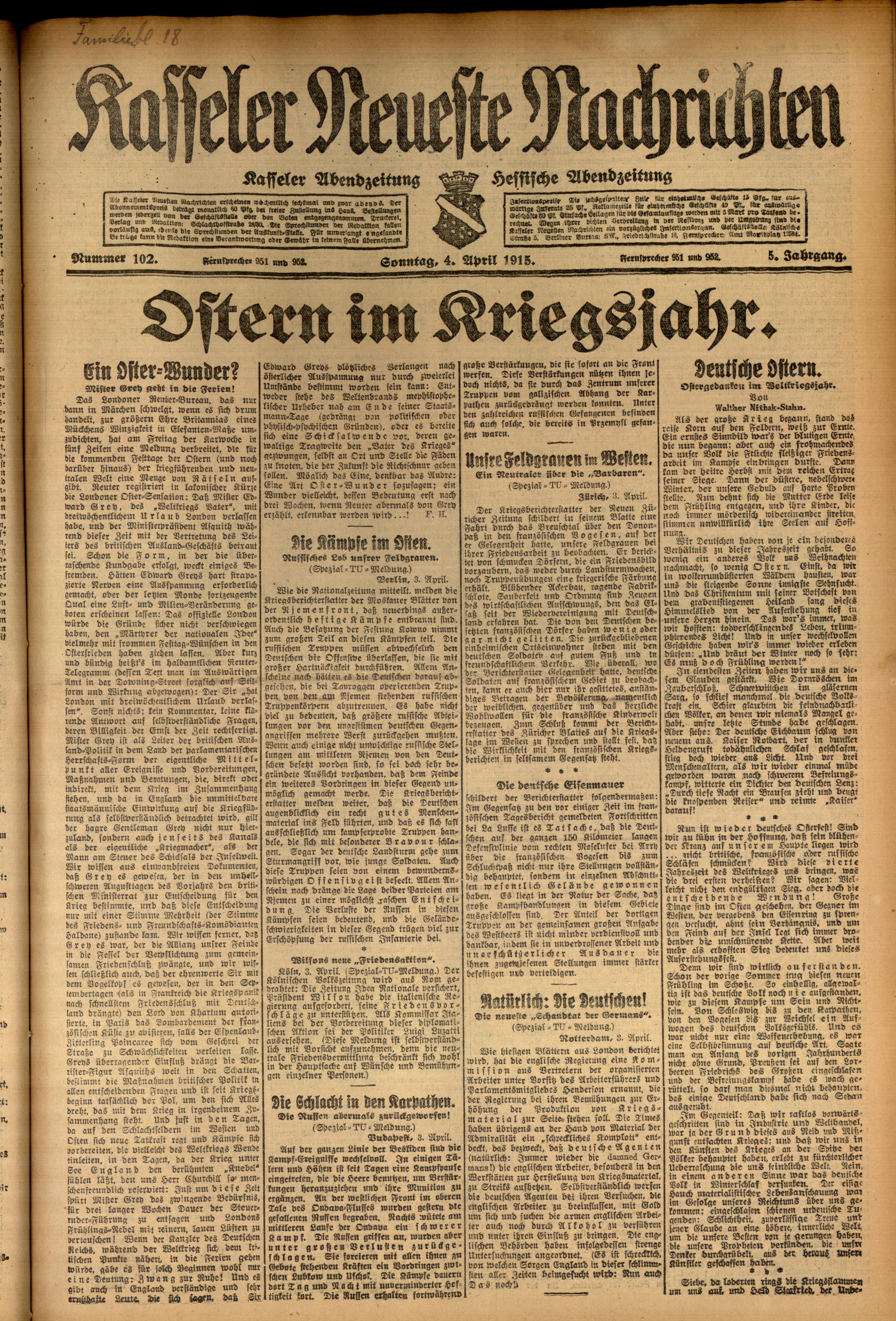 Casseler neueste Nachrichten. 1914-1918