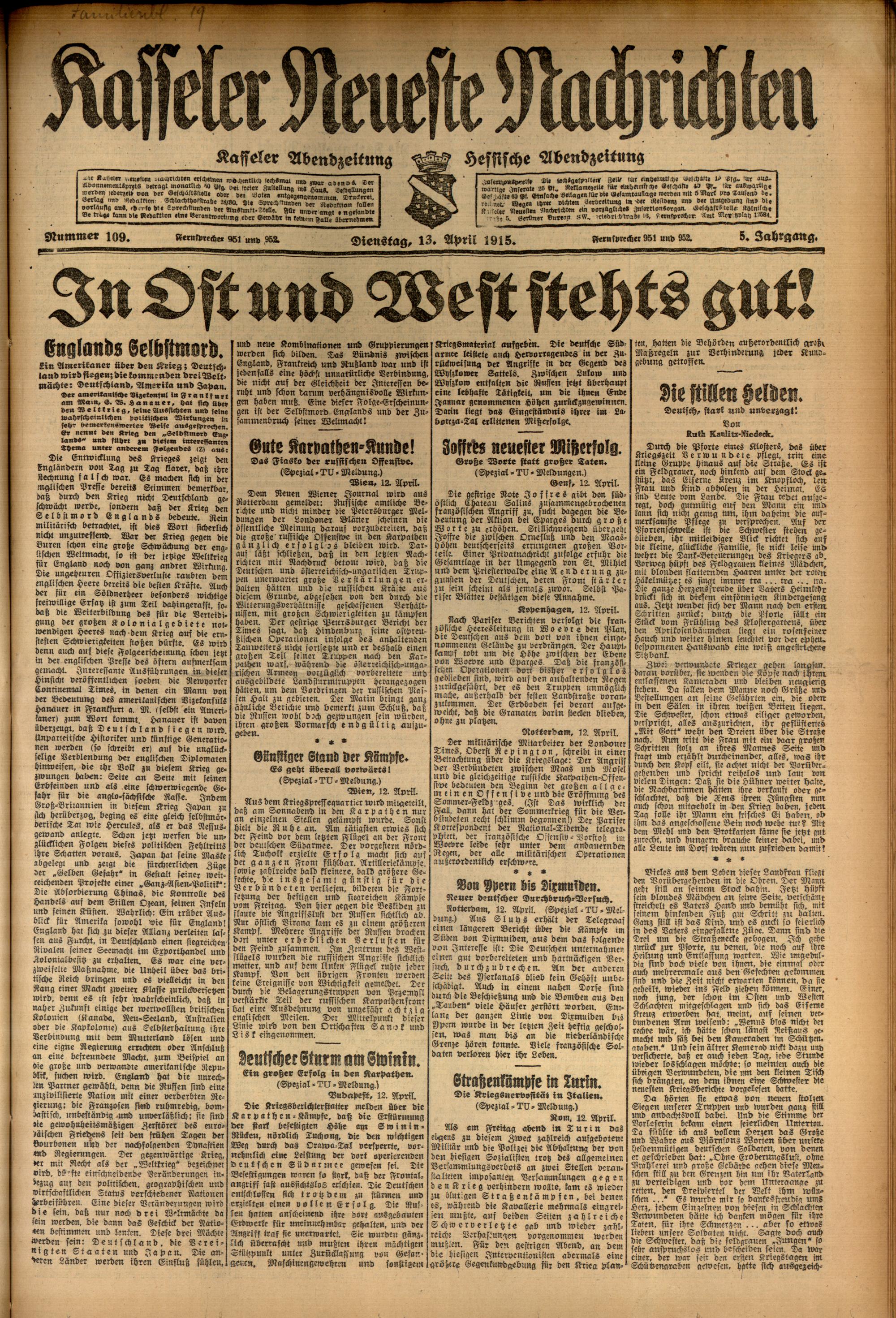 Casseler neueste Nachrichten. 1914-1918