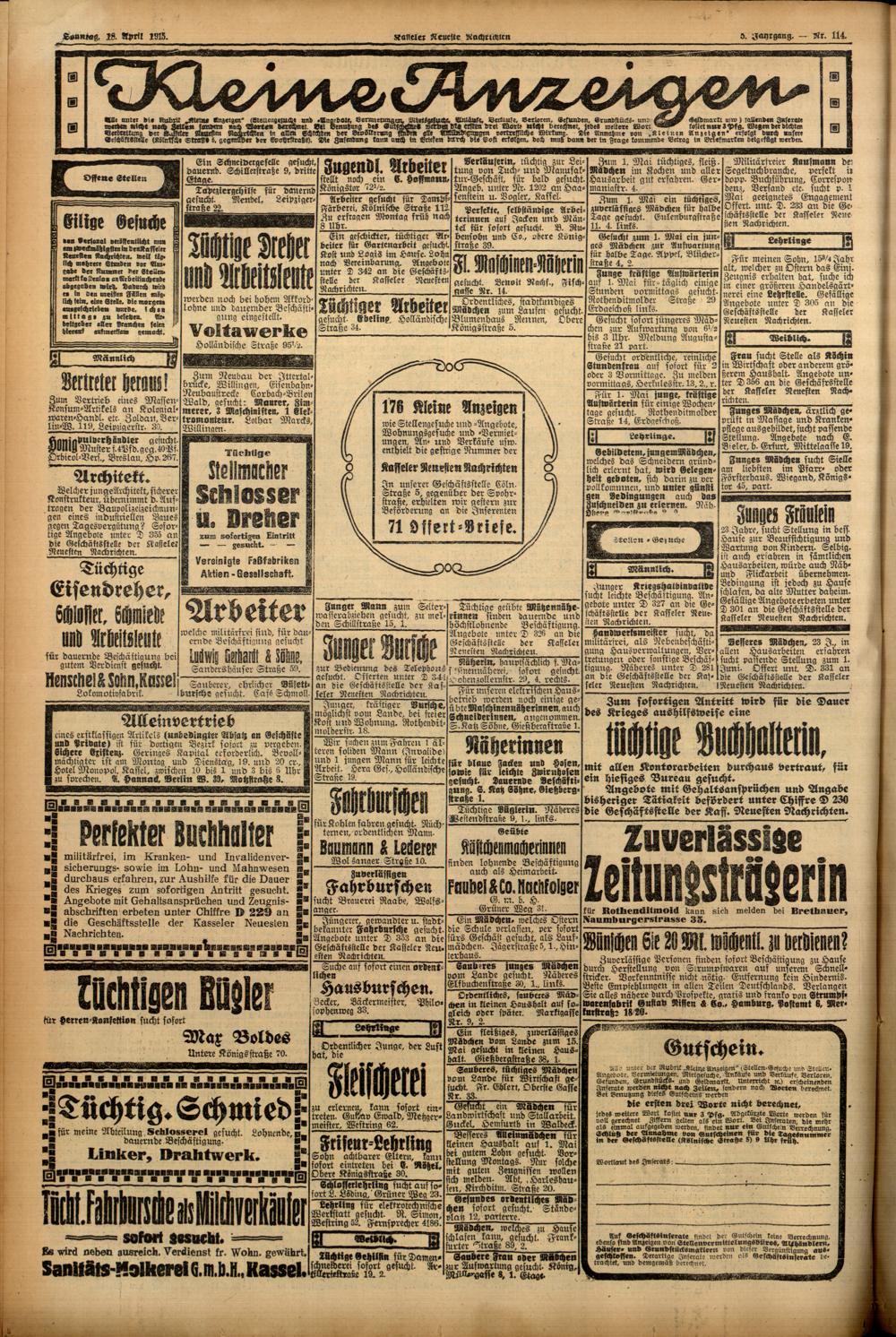 Casseler neueste Nachrichten. 1914-1918