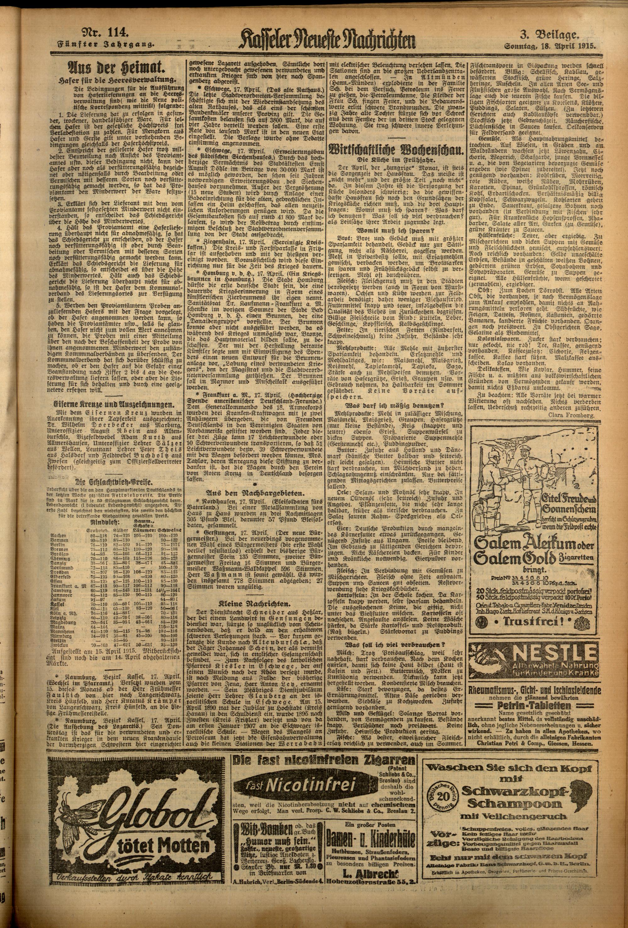 Casseler neueste Nachrichten. 1914-1918