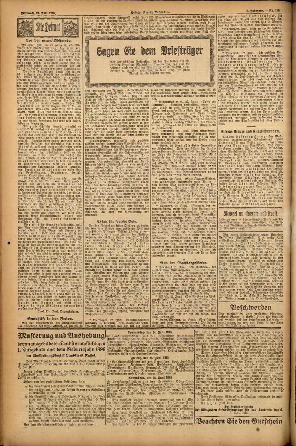 Casseler neueste Nachrichten. 1914-1918