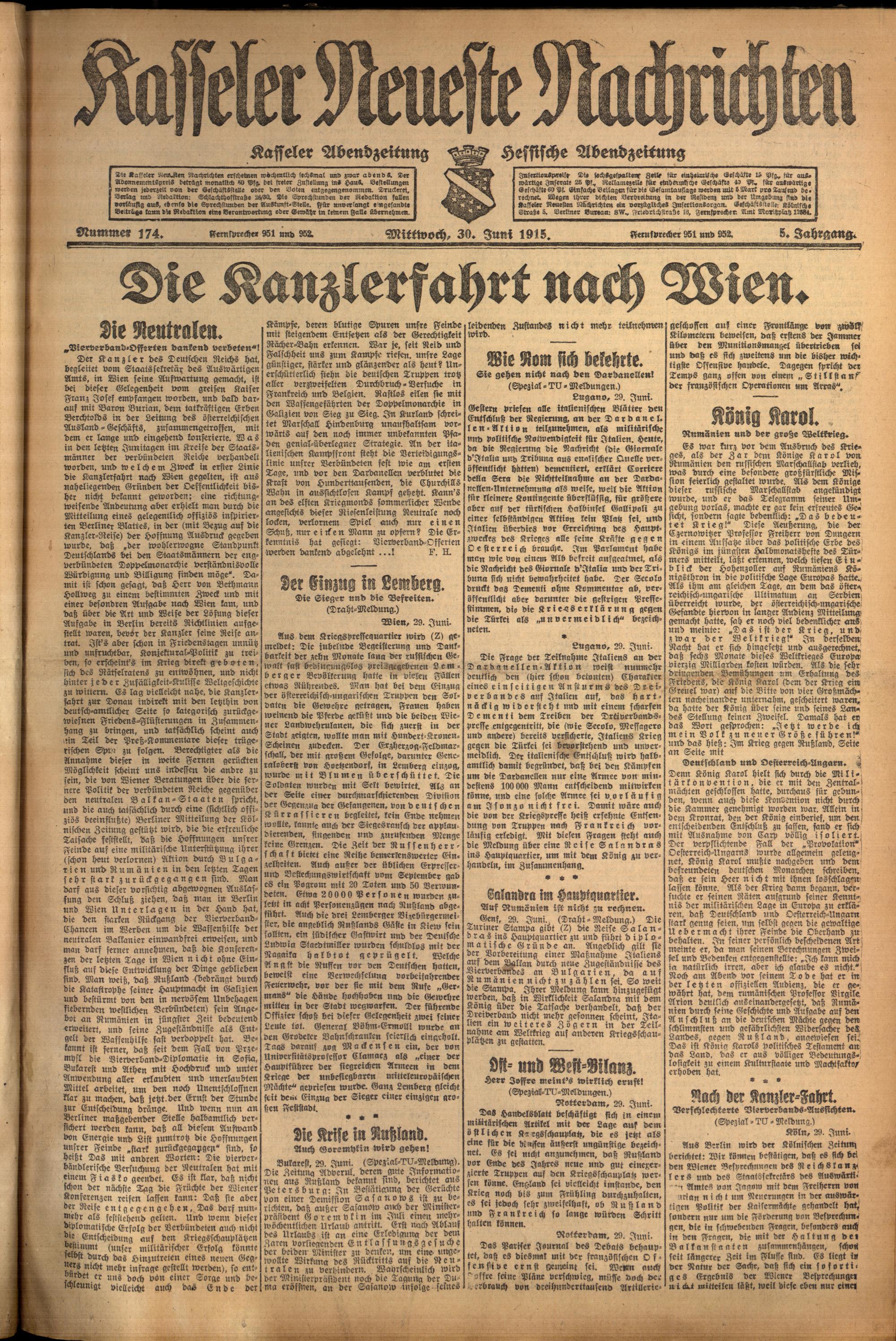 Casseler neueste Nachrichten. 1914-1918