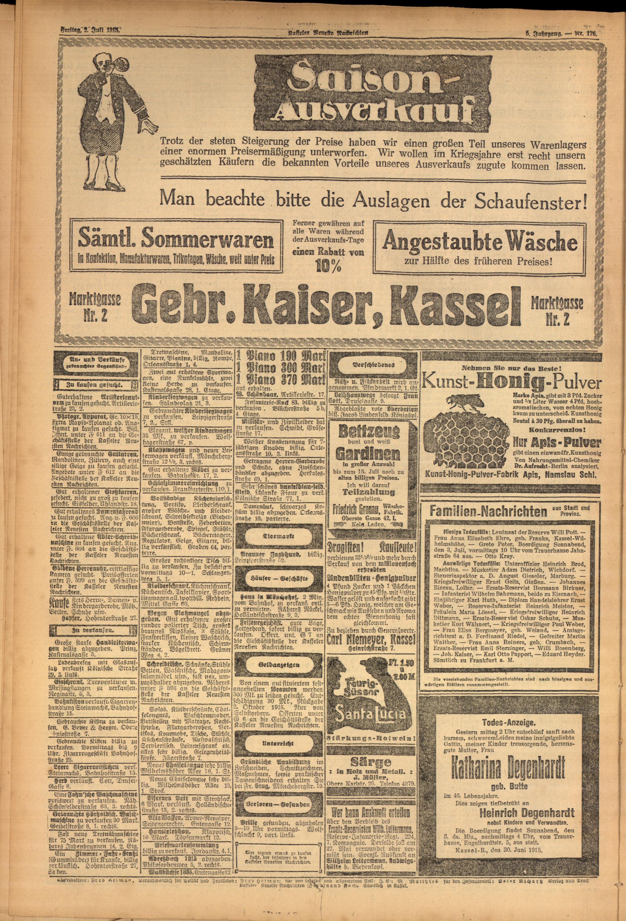 Casseler neueste Nachrichten. 1914-1918