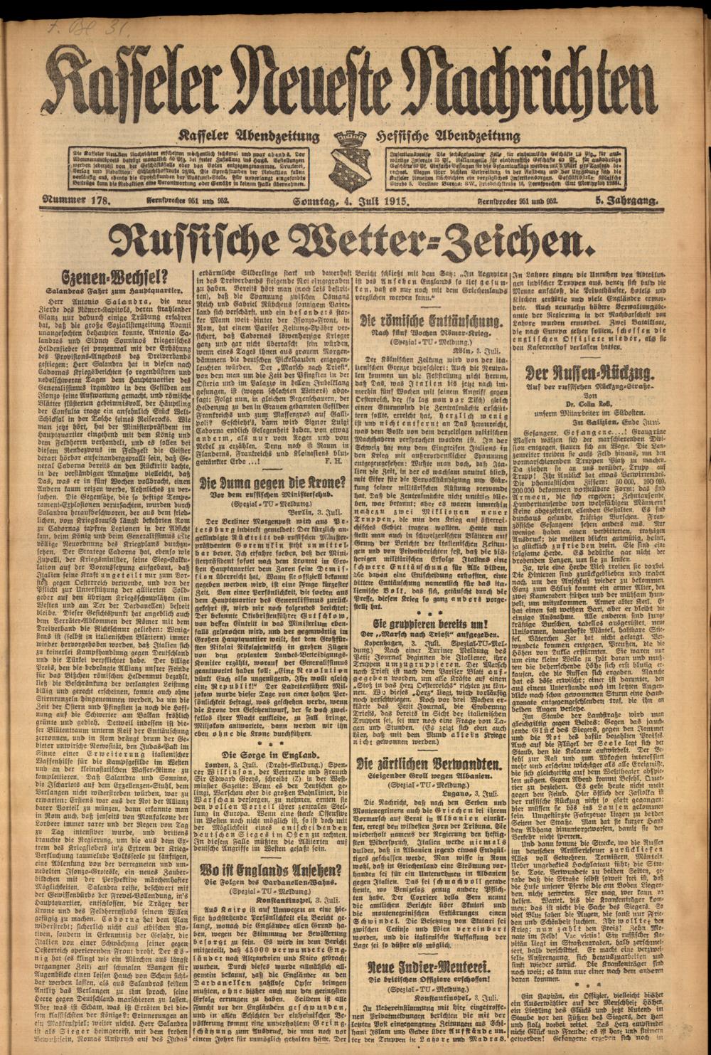 Casseler neueste Nachrichten. 1914-1918