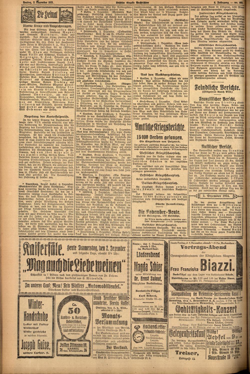 Casseler neueste Nachrichten. 1914-1918