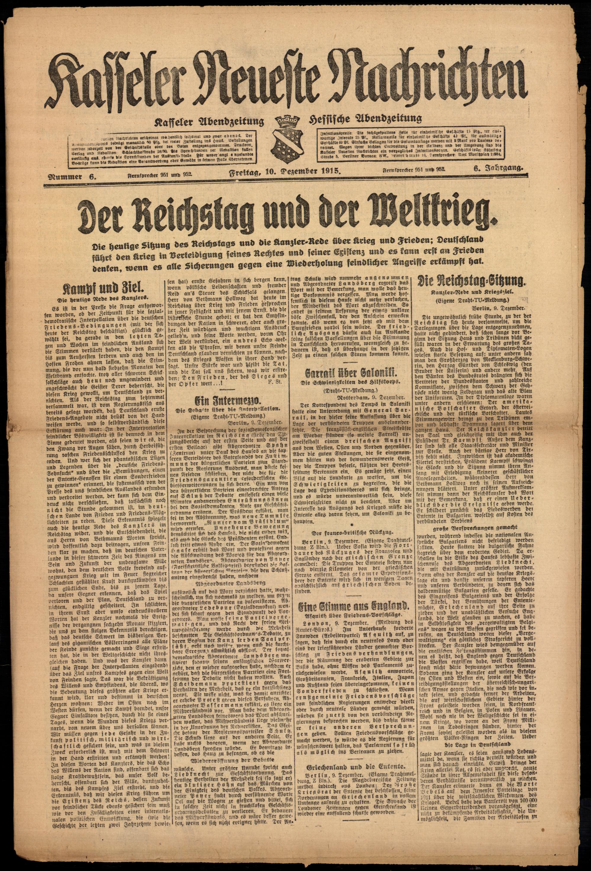Casseler neueste Nachrichten. 1914-1918