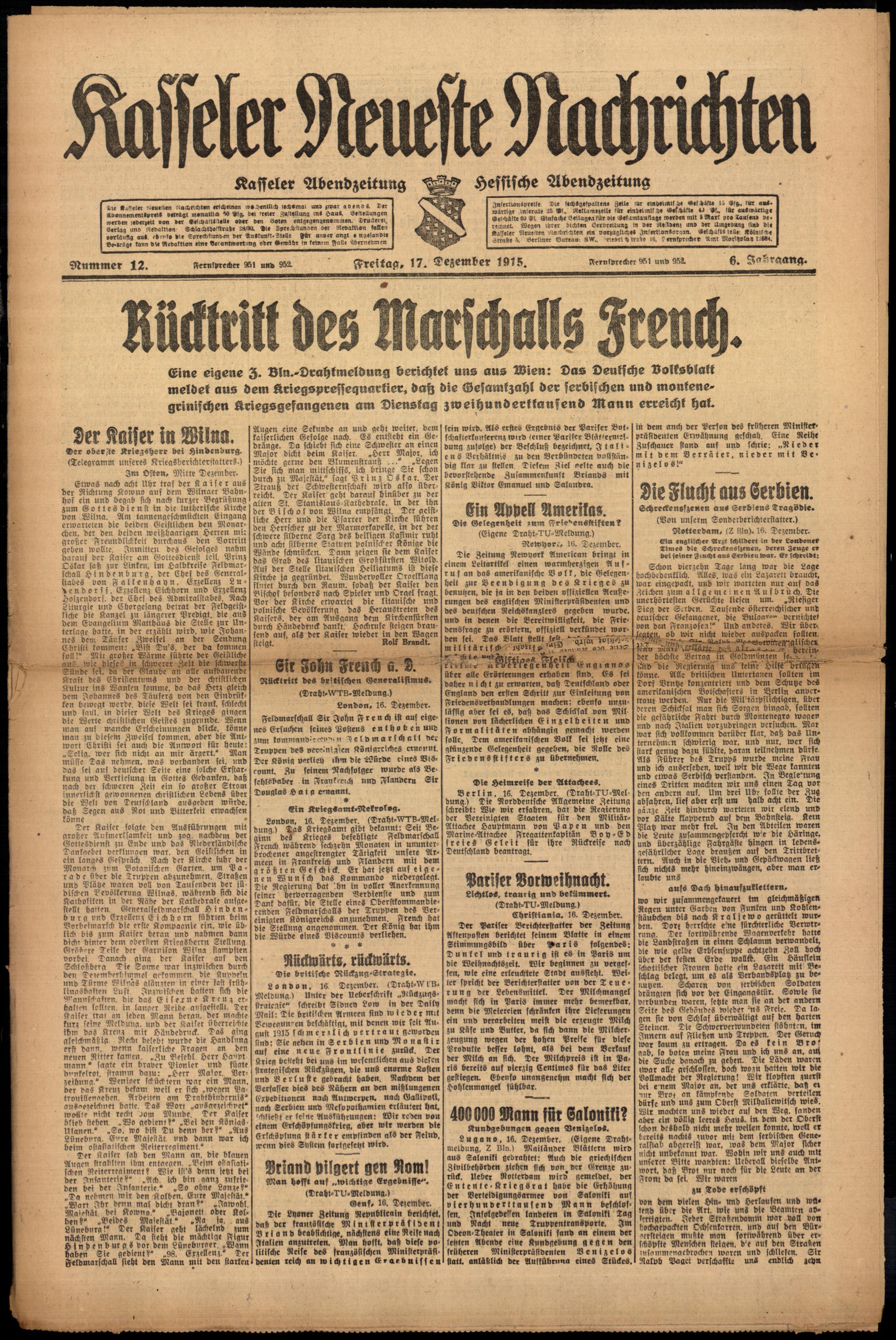 Casseler neueste Nachrichten. 1914-1918