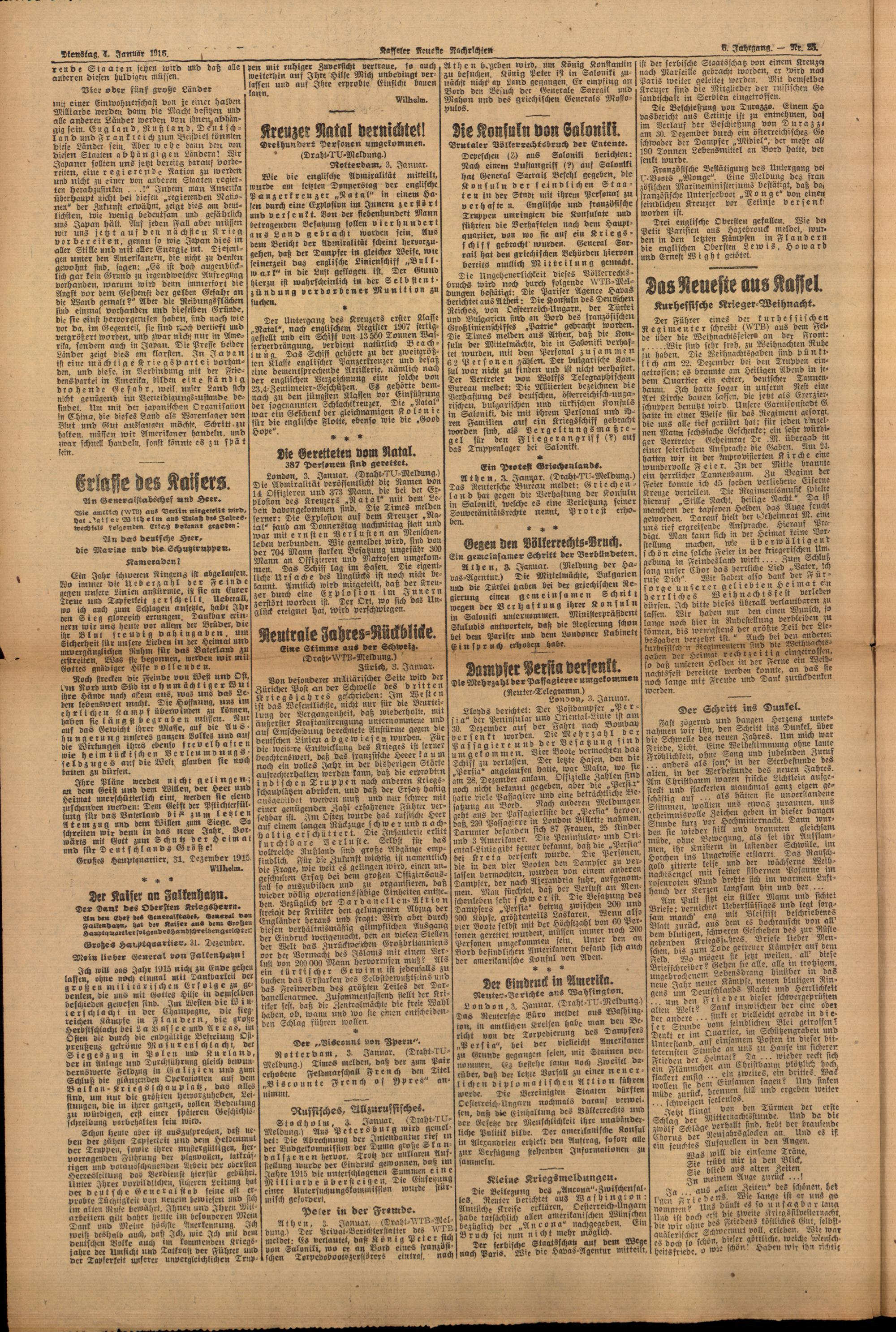 Casseler neueste Nachrichten. 1914-1918