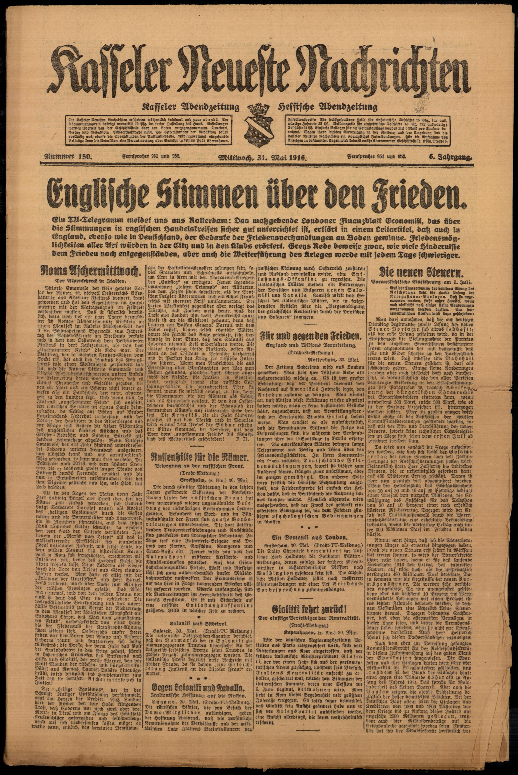 Casseler neueste Nachrichten. 1914-1918