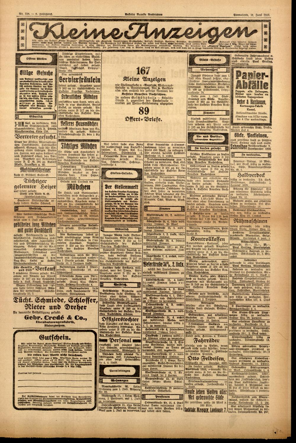 Casseler neueste Nachrichten. 1914-1918